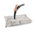Vynikajúce pre skladovanie odevov, lôžkovín pod. S úsporou miesta až 75 %. Bielizeň uložená vo vákuovom vreci je chránená pred vlhkom a nečistotami. S univerzálnym ventilom pre rýchle odsatie vzduchu vysávačom a dvojitým vzduchotesným zipsovým uzáverom pre ľahké plnenie. Vyrobené z odolného plastového materiálu. 3 roky záruka.