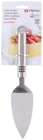 Pre jednoduchú manipuláciu s krehkými zákuskami a inými potravinami skvele slúži tortová servírovacia lopatka. Materiál: nerezová oceľ. Rozmery: dĺžka 27,5 cm.Tortová servírovacia lopatkaIdeálna na krehké torty a ostatné potravinyNerezová oceľVhodná do umývačky