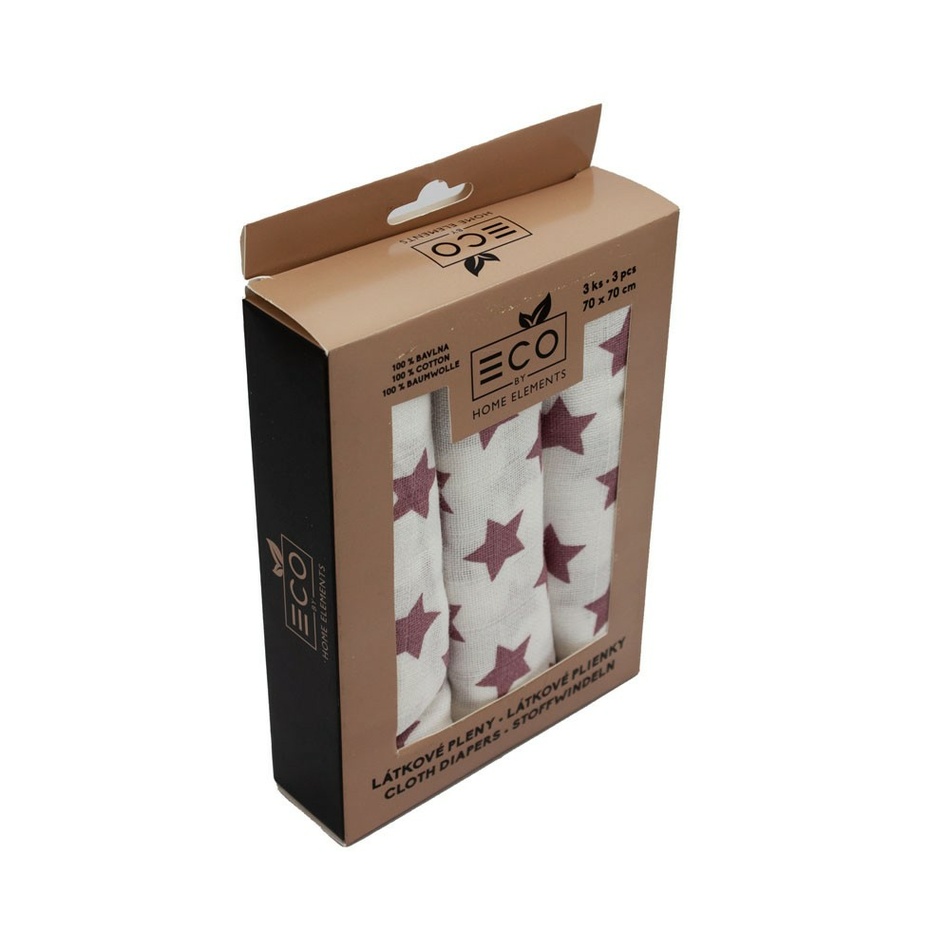 Trade Concept Bavlnené plienky Hviezdičky ružová, 70 x 70 cm, sada 3 ks