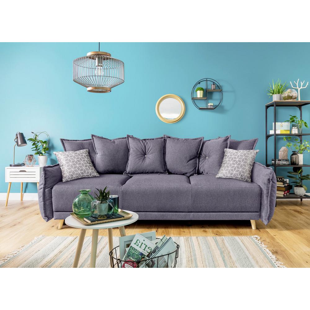 Tento výrobok je k dispozícii iba ONLINE. Moderné bývanie musí byť nielen elegantné, ale aj praktické. S trojmiestnou pohovkou od značky MID.YOU vnášate do svojho domova funkčný nábytok s atraktívnym vzhľadom. S rozmerom približne 230 x 80 x 100 cm, s výškou sedadla približne 44 cm a hĺbkou sedadla 58 cm, ponúka 3 miesta na sedenie a boduje nielen ako pútač pozornosti, ponúka tiež veľký komfort. Výplň sedacích vankúšov tvorí jadro z polyuretánovej peny a vlnité pružiny. Svetlosivá tkanina je pomerne robustná, bola testovaná s 70 000 cyklami trenia, a má dobrú stálosť farby. Súčasťou sedačky sú aj dekoračné a chrbtové vankúše. Celkový vzhľad a stabilitu dotvárajú nohy z borovicového dreva. Táto sedacia súprava je tiež čalúnená aj zo zadnej strany v originálnom poťahu, preto je možné ju umiestniť kamkoľvek do priestoru. Pre spontánnych hostí alebo pre dlhé filmové večery je možné pohovku s pomocou pár jednoduchých krokov premeniť na útulné lôžko, s plochou ležania približne 140 x 200 cm. Sedačka tiež disponuje úložným priestorom vo forme boxu, kde môžete p