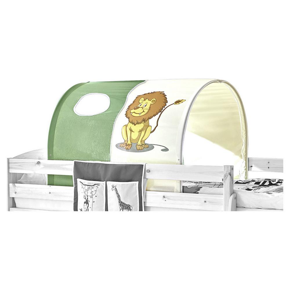 Tento tovar je k dispozícii IBA ONLINE. Tento tunel na hranie premení poschodovú posteľ vášho dieťaťa na vzrušujúci svet plný dobrodružstiev. Tunel poskytuje pocit bezpečia a vytvára tmavú jaskyňu, aby sa vaše ratolesti mohli pokojne ponoriť do sveta snov. Tiež je skvelým prvkom na hranie. Malé okienko umožňuje výhľad do vonkajšieho sveta. Tunel na hranie bol vyrobený zo 100 % bavlny v zelenej a béžovej farbe s obrázkom leva, a s rozmermi cca 100 x 73 x 87 cm (Š x V x H). Je možné ho jednoducho a prakticky pripevniť do vnútra postele pomocou tyčí a úchytov. Vyberajte z rôznych farieb a spájajte tunely s poschodovými posteľami s farebnými závesmi TIPSI, TOBY, KASPER, THEO, MANUEL, MALTE a SAMMY! K dispozícii sú tiež doplnky ako vankúše a vrecká v ladiacich farbách a dizajnoch. Objavte ich, kombinujte, a vytvorte vašim deťom veselé ihrisko! Upozornenie: Tento tovar sa nenachádza v našich predajniach. Objednať si ho môžete iba cez e-shop Möbelix. Tento tovar je k dispozícii IBA ONLINE, a zároveň je to tovar s doručením formou DROPSHIPPING. Čo to pre Vás znamená? (DROPSHIPPING) – rýchlejšie doručenie – tovar id