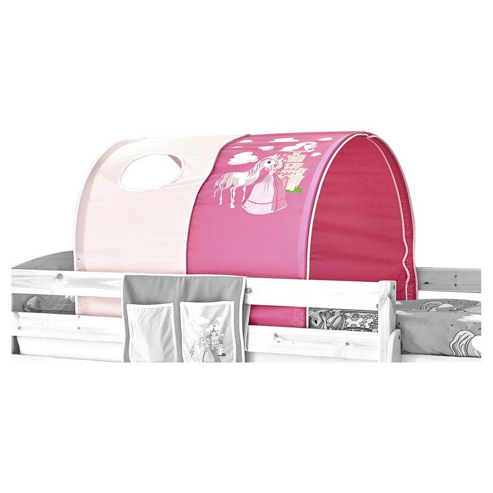 Tento tovar je k dispozícii IBA ONLINE. Tento tunel na hranie premení poschodovú posteľ vášho dieťaťa na vzrušujúci svet plný dobrodružstiev. Tunel poskytuje pocit bezpečia a vytvára tmavú jaskyňu, aby sa vaše ratolesti mohli pokojne ponoriť do sveta snov. Tiež je skvelým prvkom na hranie: s motívom princeznej a jej koníka poteší nejednu malú princeznú. Malé okienko umožňuje výhľad do vonkajšieho sveta. Tunel na hranie bol vyrobený zo 100 % bavlny v dvoch odtieňoch ružovej farby, a s rozmermi cca 100 x 73 x 87 cm (Š x V x H). Je možné ho jednoducho a prakticky pripevniť do vnútra postele pomocou tyčí. Vyberajte z rôznych farieb a spájajte tunely s poschodovými posteľami s farebnými závesmi TIPSI, TOBY, KASPER, THEO, MANUEL, MALTE a SAMMY! K dispozícii sú tiež doplnky ako vankúše a vrecká v ladiacich farbách a dizajnoch. Objavte ich, kombinujte a vytvorte vašim deťom veselé ihrisko! Upozornenie: Tento tovar sa nenachádza v našich predajniach. Objednať si ho môžete iba cez e-shop Möbelix. Tento tovar je k dispozícii IBA ONLINE, a zároveň je to tovar s doručením formou DROPSHIPPING. Čo to pre Vás znamená? (DROPSHIPPING) – rýchlejšie doručenie