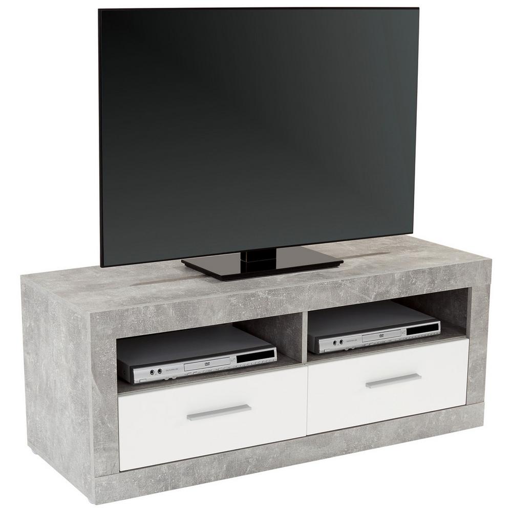 Tv-diel zo série MALTA v dekore betón v kombinácii s bielou farbou vysokého lesku dodá Vašej obývacej izbe štýl. Trendová kombinácia oživí každú izbu. Pozostáva z 2 zásuviek a 2 otvorených priečinkov, ktoré Vám poskytnú dostatok úložného priestoru. Š/V/H: 128 x 50 x 42 cm. Objavte ďalšie stolíky do obývačky z kategórií TV stolíky sivé, TV stolíky biele a biele stolíky do obývačky!
