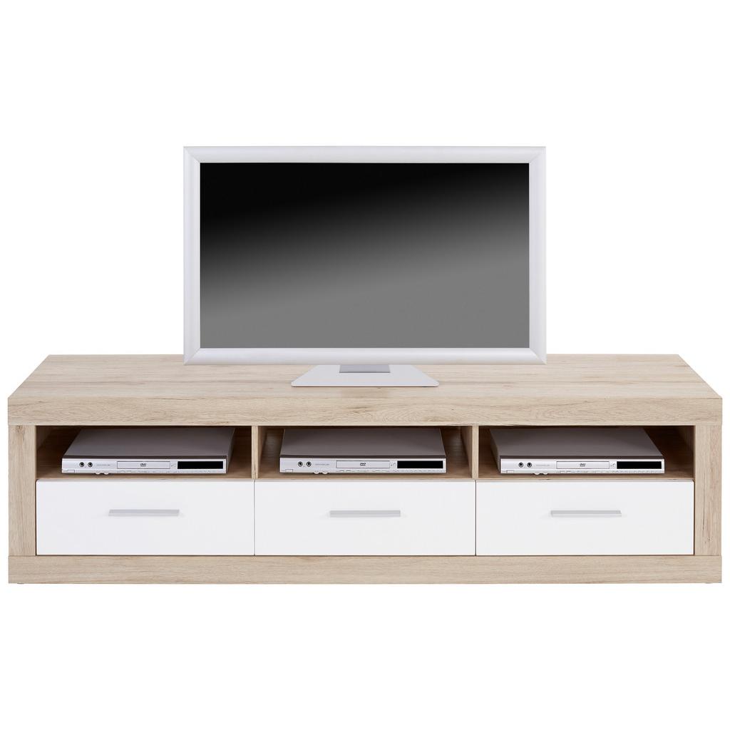 TV diel MALTA v dekore San Remo svetlý/biela vysoký lesk, s 3 zásuvkami. Š/V/H: 185/50/42 cm