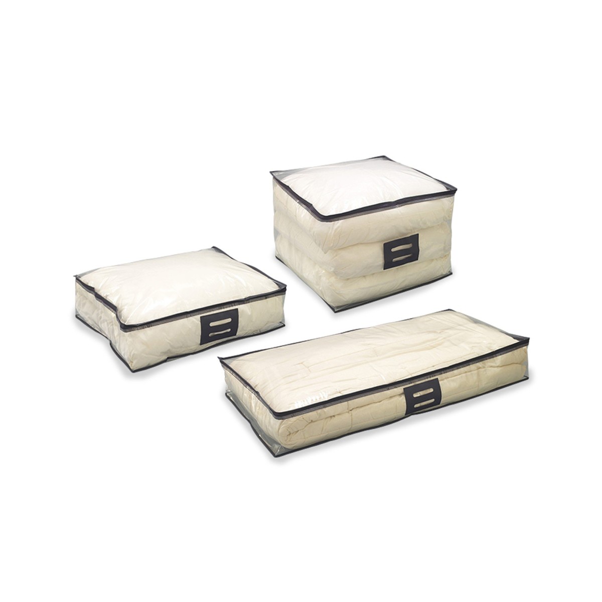 Na upratovanie a ochranu Vašich odevov či prikrývok Vám prinášame tieto úložné priehľadné vaky. Vyberte si zo širokej ponuky rozmerov a chráňte svoje odevy. Dodávame jednotlivo alebo v sade 2 ks zo všetkých rozmerov. Rozmer: veľ. 1: 60 x 48 x15 cm. Veľ.2: 100 x 48 x 15 cm. Vel..3 50 x 50 x 35 cm. Veľ. 4: 120 x 48 x 15 cm. Transparentný polyetylén.