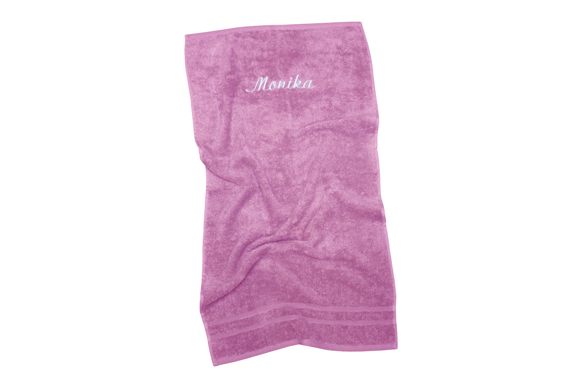 Potrebujete originálny darček pre každého? Uterák s bordúrou a výšivkou na prianie je výnimočný a praktický zároveň. Obdarovaný si od tejto chvíle svoj uterák vždy ľahko nájde. Medzi prednosti uteráka patrí dokonalá savosť a jemnosť. Sú ušité zo 100% bavlny, a preto je možné pri ich praní použiť aj menšiu dávku aviváže na zmäkčenie. Uteráky obdržali certifikát zdravotne nezávadného materiálu OEKO-TEX Standard 100.Maximálny počet znakov pre vyšitie je 12. Počet vyšitých znakov úmerne ovplyvňuje výšku výšivky (viac znakov = menšie písmo). Výslednú výšku písma ovplyvňuje aj rozmer zvoleného uteráka. Pri použití kombinácie písmen s dolnými doťahmi (g, j, p, q, y) a hornými doťahmi (b, d, f, h, k, l, t) je nutné počítať s optickou zmenou výšky písma. V takom prípade sa celková výška výšivky meria od najvyššieho bodu písmen v hornej linke po najnižší bod písmen v spodnej linke. Tým je výsledné písmo nižšie, než by to bolo pri použití písmen iba s hornými doťahmi.Odporúčanie: rubová strana výšivky je podložená netkanou textíliou, ktorú odporúčame odstrániť až po prvom vypraní. Odstránite ju jednoduchým odtrhnutím alebo šetrným odstrihnutím nožnicami. Vrchná strana výšivky je opatrená jemnou ochrannou fóliou, ktorá je ľahko rozpustná vo vode.Výber typu výšivky:30 x 50 cm – výška písma 3 cm (vzhľadom k rozmerom vyšívame iba iniciály)50 x 90 cm, 70 x 130 cm, 90 x 150 cm – Meno podľa vášho želania: výška písma až 5 cmŠablóny mix: výška 4 cmŠablóny mačky, psy a kone: výška 5 – 8 cm (výška sa prispôsobí veľkosti plochy textilu), výšivka iba v antracitovej farbeFarba vyšívacích nití na výber: šedá, antracitová, ružová, modrá, biela.Uterák s bordúrouMäkký a savýCertifikát OEKO-TEX Standard 100100% bavlnaGramáž 500 g/m2
