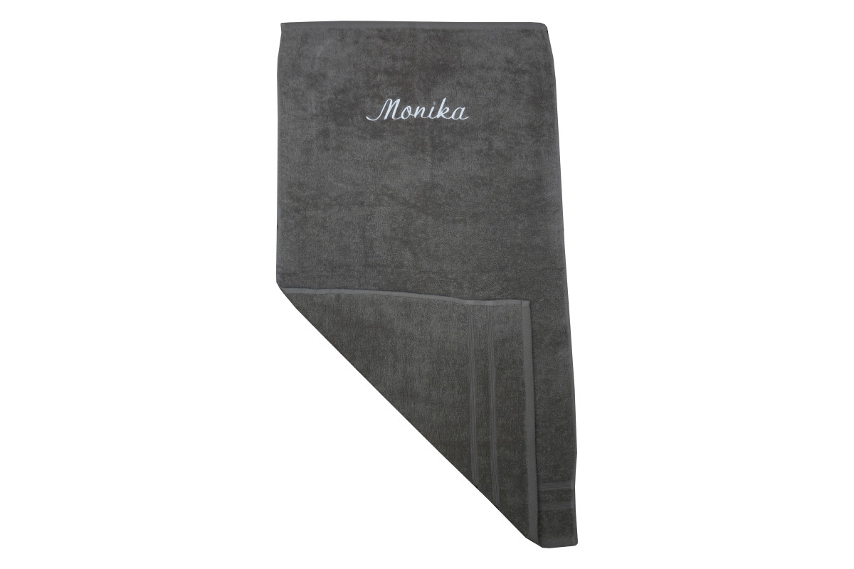 Potrebujete originálny darček pre každého? Uterák s bordúrou a výšivkou na prianie je výnimočný a praktický zároveň. Obdarovaný si od tejto chvíle svoj uterák vždy ľahko nájde. Medzi prednosti uteráka patrí dokonalá savosť a jemnosť. Sú ušité zo 100% bavlny, a preto je možné pri ich praní použiť aj menšiu dávku aviváže na zmäkčenie. Uteráky obdržali certifikát zdravotne nezávadného materiálu OEKO-TEX Standard 100.Maximálny počet znakov pre vyšitie je 12. Počet vyšitých znakov úmerne ovplyvňuje výšku výšivky (viac znakov = menšie písmo). Výslednú výšku písma ovplyvňuje aj rozmer zvoleného uteráka. Pri použití kombinácie písmen s dolnými doťahmi (g, j, p, q, y) a hornými doťahmi (b, d, f, h, k, l, t) je nutné počítať s optickou zmenou výšky písma. V takom prípade sa celková výška výšivky meria od najvyššieho bodu písmen v hornej linke po najnižší bod písmen v spodnej linke. Tým je výsledné písmo nižšie, než by to bolo pri použití písmen iba s hornými doťahmi.Odporúčanie: rubová strana výšivky je podložená netkanou textíliou, ktorú odporúčame odstrániť až po prvom vypraní. Odstránite ju jednoduchým odtrhnutím alebo šetrným odstrihnutím nožnicami. Vrchná strana výšivky je opatrená jemnou ochrannou fóliou, ktorá je ľahko rozpustná vo vode.Výber typu výšivky:30 x 50 cm – výška písma 3 cm (vzhľadom k rozmerom vyšívame iba iniciály)50 x 90 cm, 70 x 130 cm, 90 x 150 cm – Meno podľa vášho želania: výška písma až 5 cmŠablóny mix: výška 4 cmŠablóny mačky, psy a kone: výška 5 – 8 cm (výška sa prispôsobí veľkosti plochy textilu), výšivka iba v antracitovej farbeFarba vyšívacích nití na výber: šedá, antracitová, ružová, modrá, biela.Uterák s bordúrouMäkký a savýCertifikát OEKO-TEX Standard 100100% bavlnaGramáž 500 g/m2