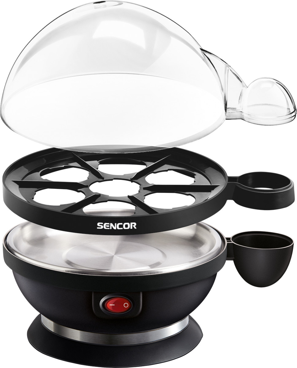 Nie ste si nikdy istí, že uvaríte vajce presne tak, ako potrebujete? S varičom vajec neistota okamžite zmizne. Tento skvelý pomocník zvládne naraz uvariť až 7 vajec. Oceníte najmä možnosť voľby 3 stupňov: Vajcia namäkko, stredne varené a natvrdo. Zásobník je vyberateľný a zároveň v ňom vajcia môžete tiež servírovať. Ergonomický dizajn umožňuje jednoduché čistenie. Integrovaný elektronický časovač so zvukovou signalizáciou včas upozorní na chvíľu, keď sú vajcia uvarené. Plne automatická prevádzka umožňuje jednoduchú obsluhu. Ochrana proti prehriatiu a spínač so svetelnou indikáciou sú samozrejmosťou. Oddeliteľné veko pre jednoduché čistenie. Príslušenstvo: odmerka so vstavaným hrotom.Príkon: 320 – 380 W. Hmotnosť: 575 g. Čistenie a údržba: Pred čistením sa presvedčte, že spotrebič je vypnutý a odpojený od sieťovej zásuvky. Zahriate časti spotrebiča nechajte vychladnúť. Odnímateľné veko a držiak na vajcia umyte v teplej vode za použitia neutrálneho kuchynského saponátu. Tieto časti potom dôkladne opláchnite pod čistou tečúcou vodou a osušte. Úplne nevhodné do umývačky.
