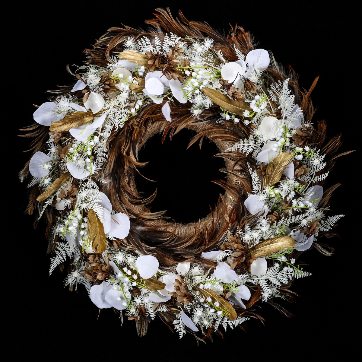 Veniec z kohútieho peria predstavuje neobvyklý a výrazný prvok, ktorý dokáže okamžite zaujať a dodať modernému interiéru jedinečný vzhľad. Vďaka svojmu nekonvenčnému dizajnu a unikátnosti kohútieho peria sa stane zaujímavým a štýlovým doplnkom pre váš priestor.