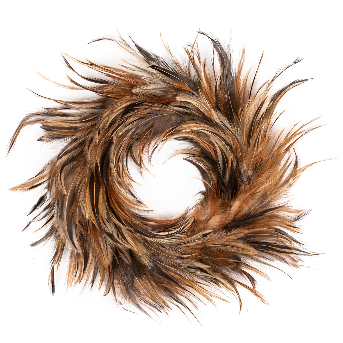 Veniec z kohútieho peria, tm. hnedá, pr. 20 cm