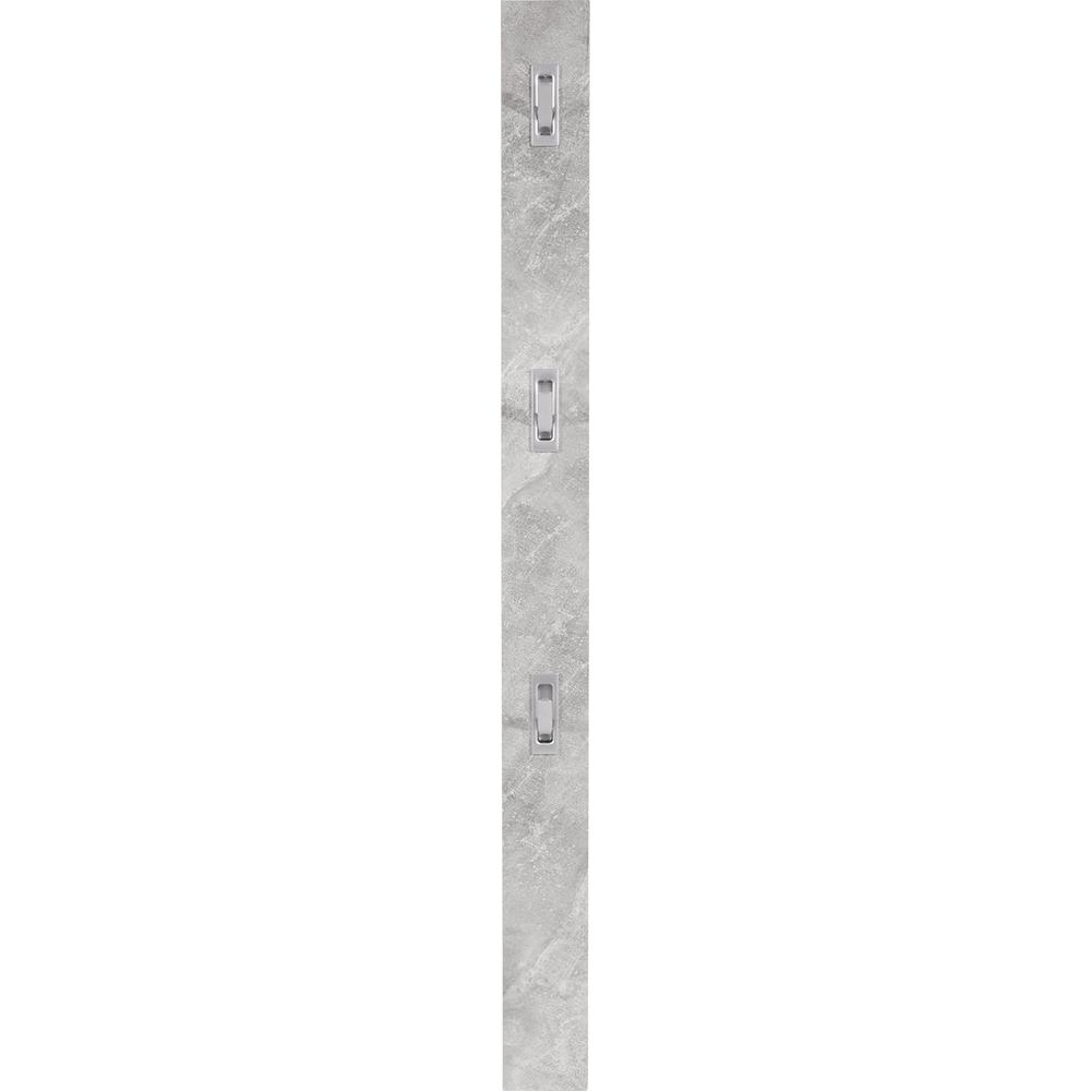 Moderný a praktický nástenný vešiak v dekore betón s 3 vyklápacími háčikmi chrómovej farby. Š/V/H: cca 12/175/2,8 cm