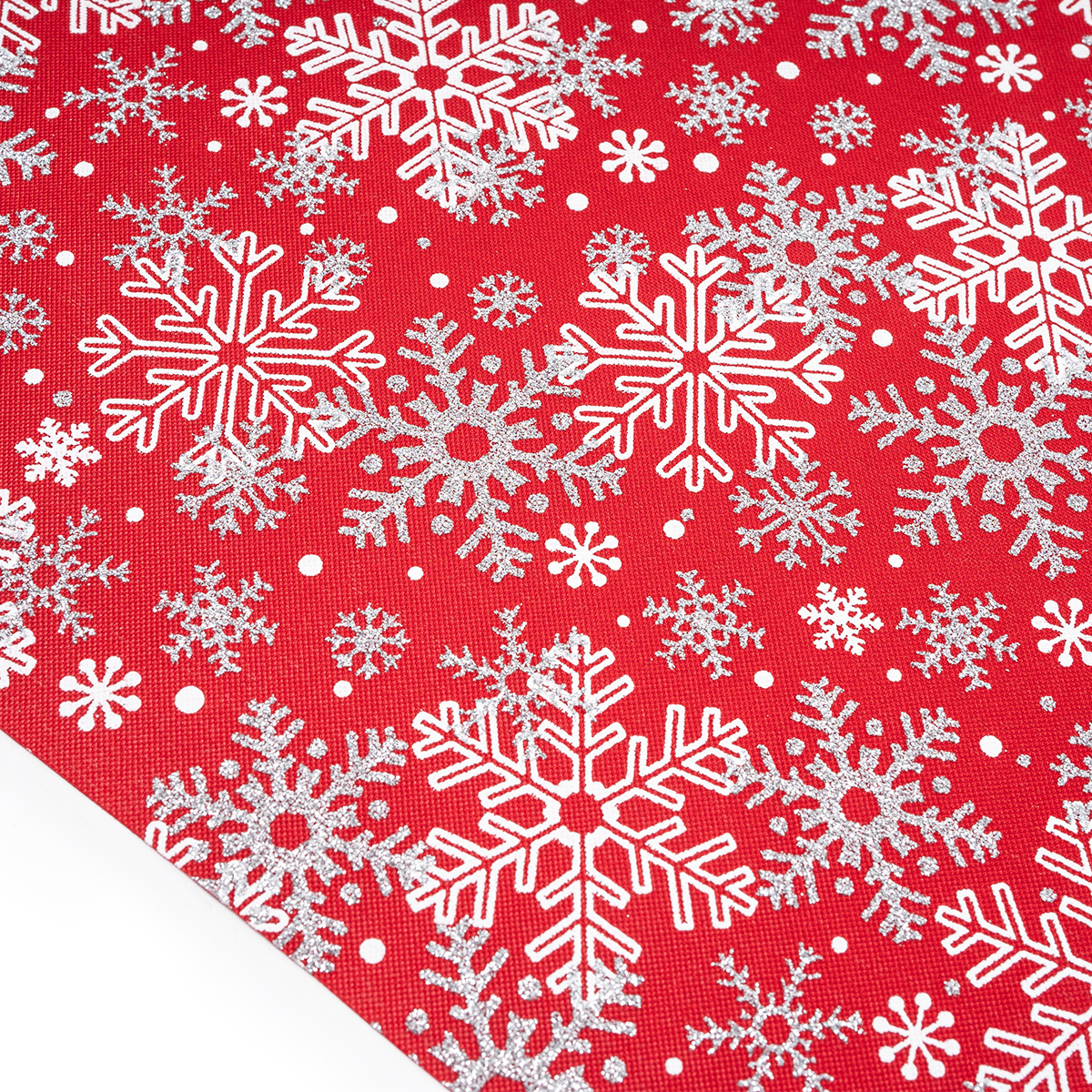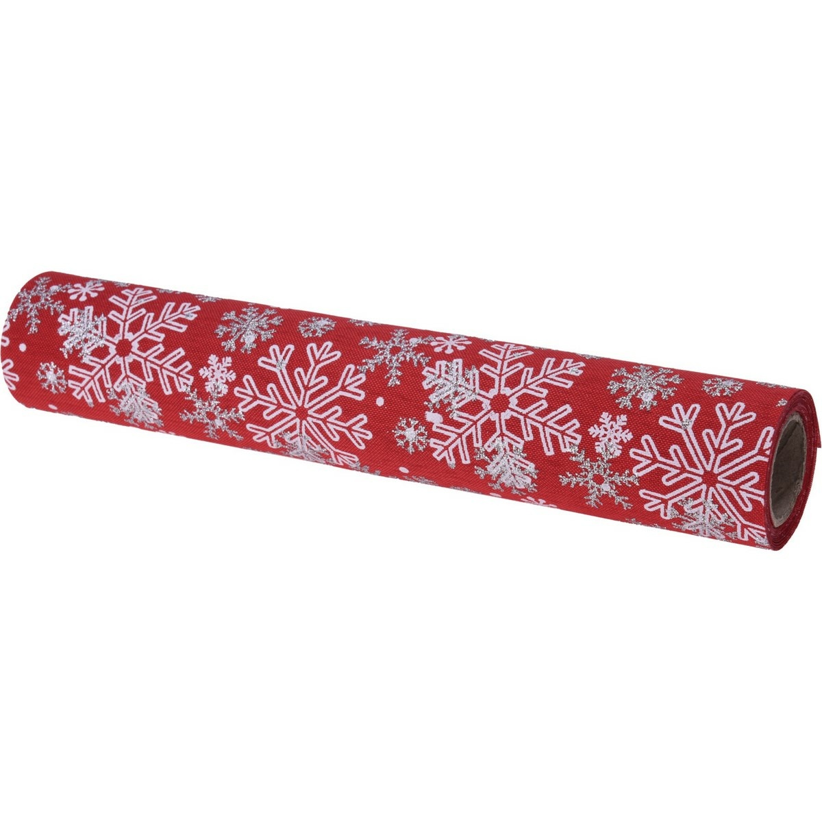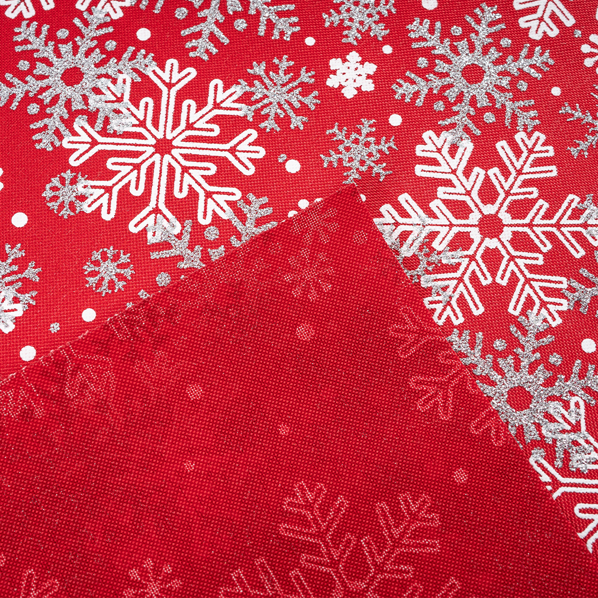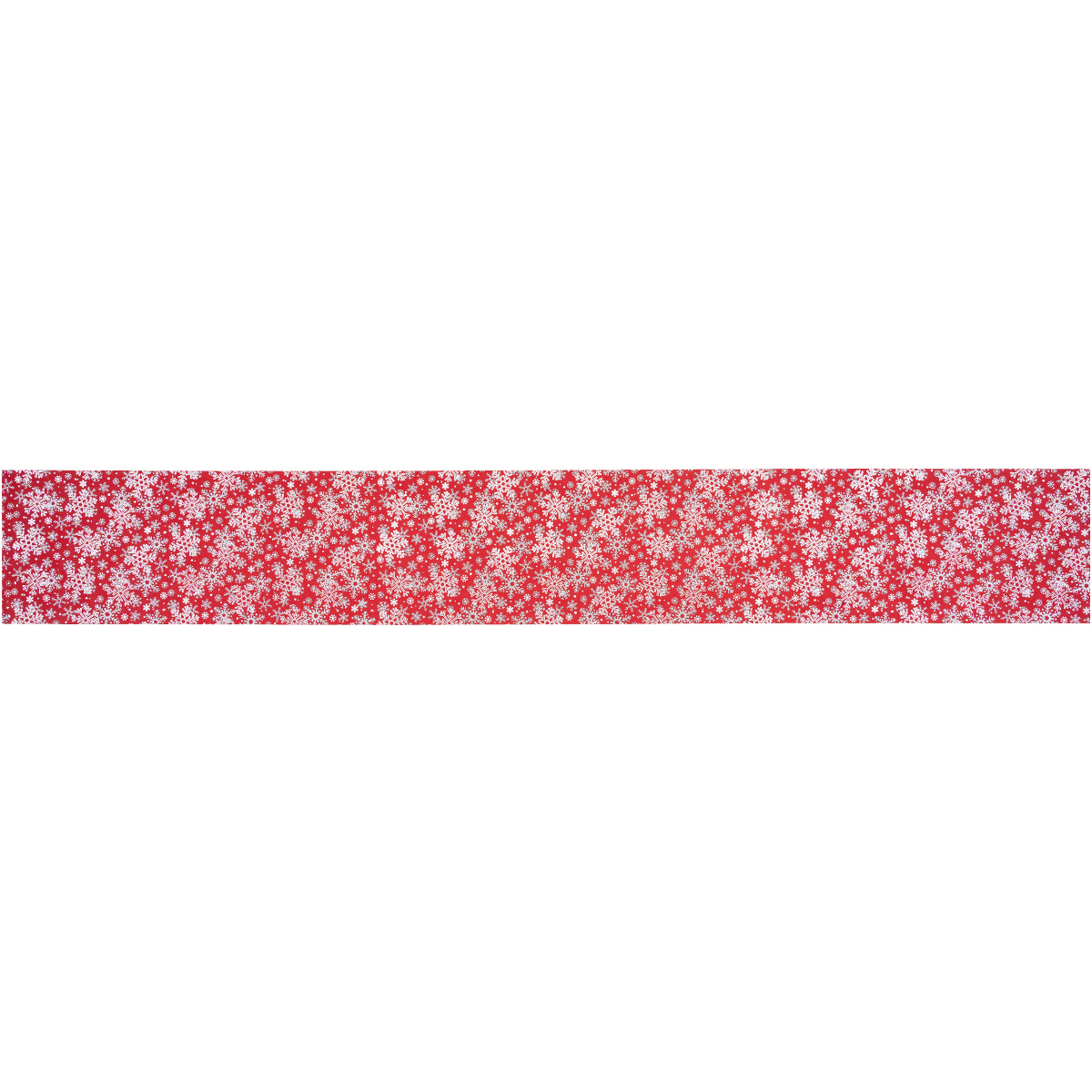 Vianočná dekoračná látka Vločky červená, 28 x 250 cm
