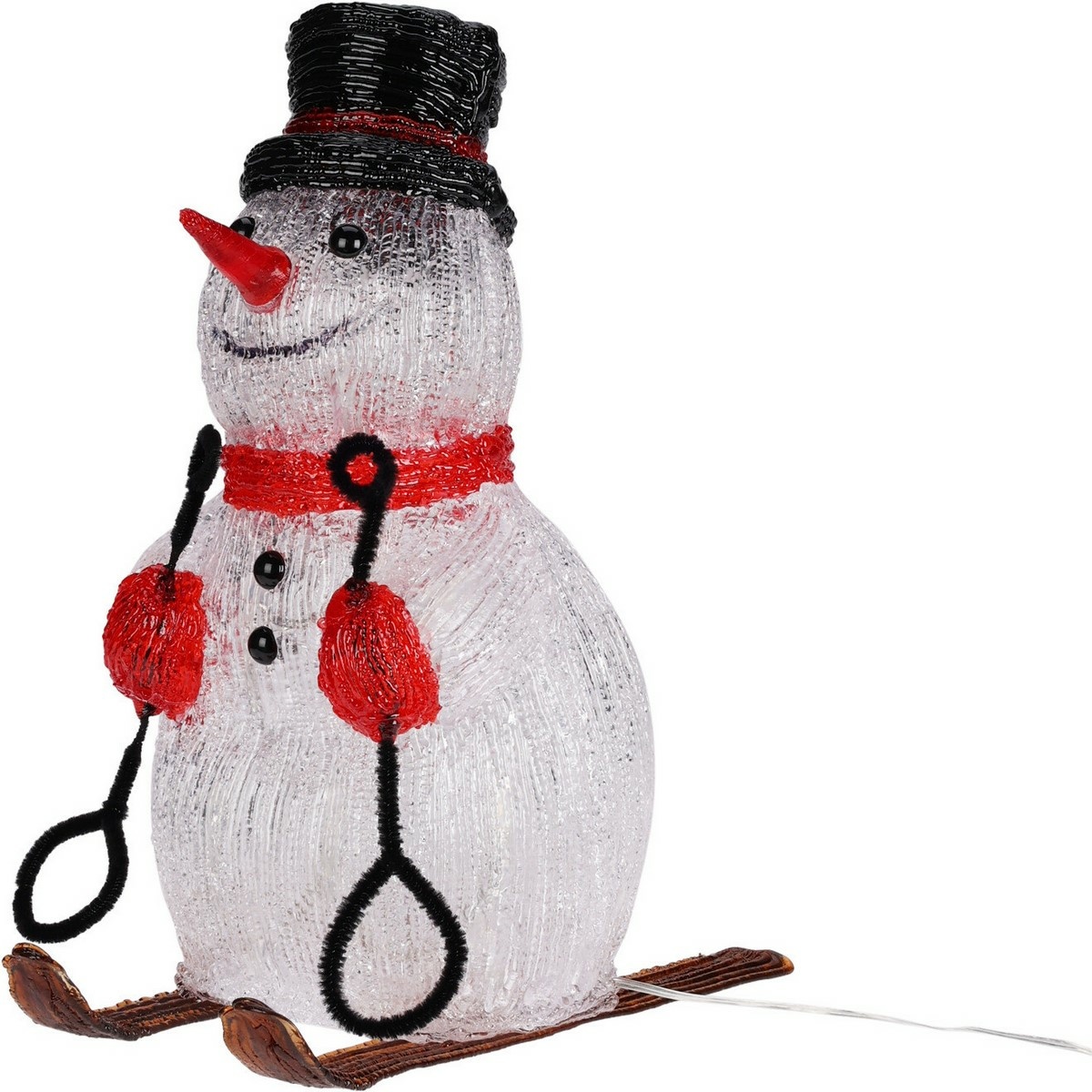 Roztomilá svetelná dekorácia snehuliaka na lyžiach skvele doplní váš interiér, ale vďaka krytiu IP44 ju môžete použiť napríklad aj v zastrešenej pergole. Snehuliak má okolo krku červený šál, na hlave klobúk a v rukách lyžiarske paličky. Prívodný kábel má 3 m.
