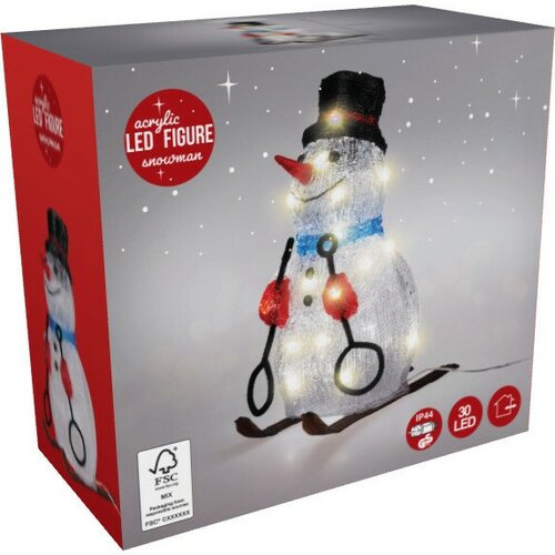 Vianočná LED dekorácia Snehuliak na lyžiach 30 LED, červená, 31 cm
