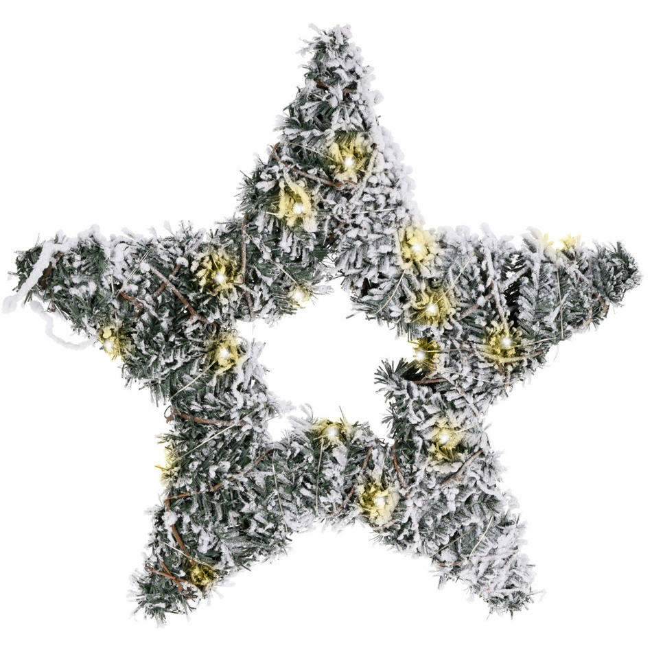 Kúpte si domov túto krásnu hviezdu a ozdobte s ňou treba vchodové dvere alebo ju zaveste na stropné osvetlenie. Je ozdobená umelým snehom. Napájaná je 3 batériami AA, ktoré nie sú súčasťou balenia.