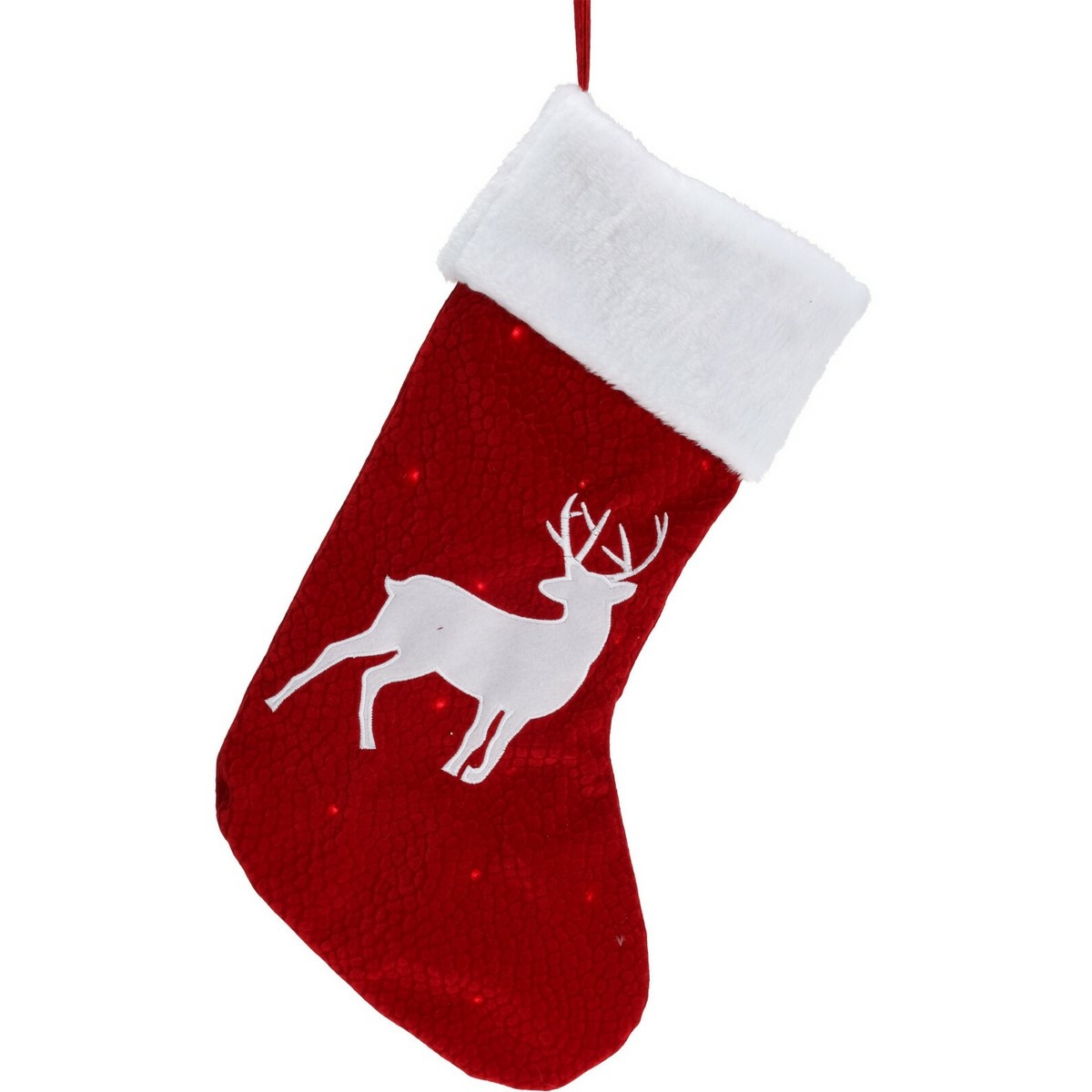 Vianočná LED ponožka so sobom červená, 41 cm