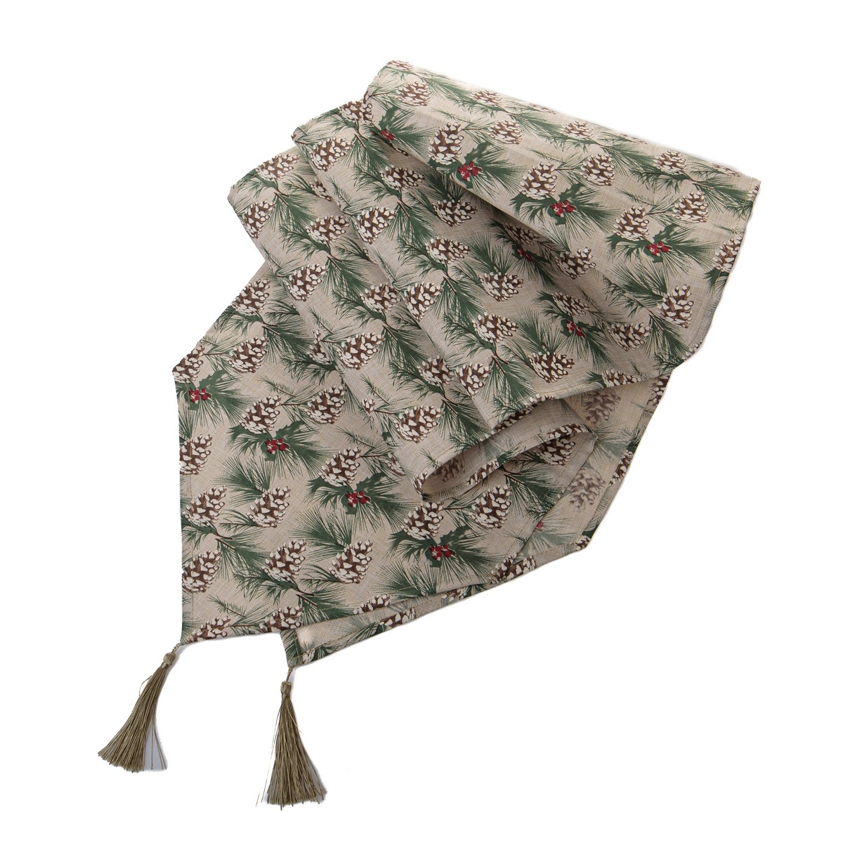 Tento behúň je ideálny pre vianočnú výzdobu vášho stola, pridá sviatočnú atmosféru a elegantný vzhľad. Krásny motív vetvičiek z ihličia a so šiškami na béžovom podklade ozvláštni vašu jedáleň alebo kuchyňu a prinesie vám vianočnú náladu. Vyrobený z kvalitného materiálu, ktorý zaistí jednoduchú údržbu.