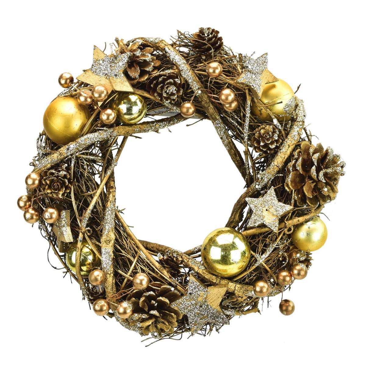 Vianočný ratanový veniec Luccia zlatá, pr. 24 cm