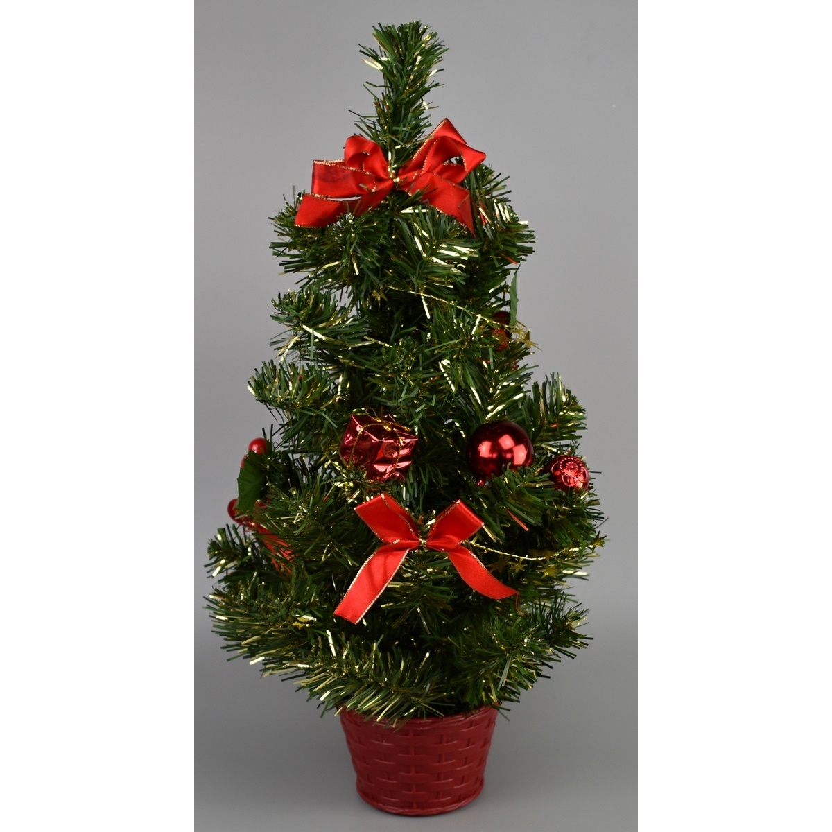 Ozdobte si váš domov touto prekrásnou dekoráciou stromčeka s krásnymi červenými ozdobami. Skvele doladí vašu sivatočnú tabuľu alebo aranžmá na poličke.