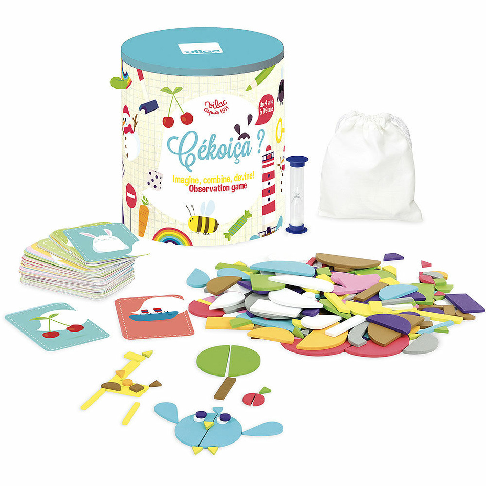 Zábavná hra, ktorá rozvíja detskú predstavivosť a postreh. Vezmite si kartičku a z dostupných tvarov do minúty postavte obrázok. Hra pre všetkých od 4 rokov. Podľa veku hráčov môžete zvýšiť čas na riešenie, alebo hrať bez časového limitu.Hračky Vilac majú značku francúzskej agentúry ADEME, to znamená, že tieto drevené hračky sú vyrábané ekologicky. Šetria životné prostredie, neznečisťujú pôdu, vodu a vzduch, neplytvajú energiami.Hlavné vlastnosti: