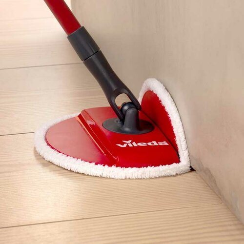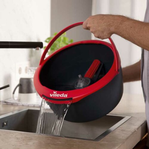 Vileda Spin & Clean je rotačný mop s plochou umývacou hlavicou okrúhleho tvaru. Priestranné vedro naplníte vodou až po vyznačenú rysku a pridáte váš obľúbený čistiaci prostriedok. Mop pomaly stlačíte na tŕň nachádzajúci sa uprostred vedra, tým sa hlavica roztočí a zospodu ju umyje voda. Tento unikátny systém zabezpečí, že bude mop úplne dokonale zbavený všetkých nečistôt a pripravený na ďalšie použitie. Ak mop na tŕň stlačíte s vyššou intenzitou, dosiahnete efektívneho vyžmýkania. Nehrozí teda, že budú pri vytieraní odkvapkávať kvapky vody na podlahu.Technické parametre a špecifikácie: