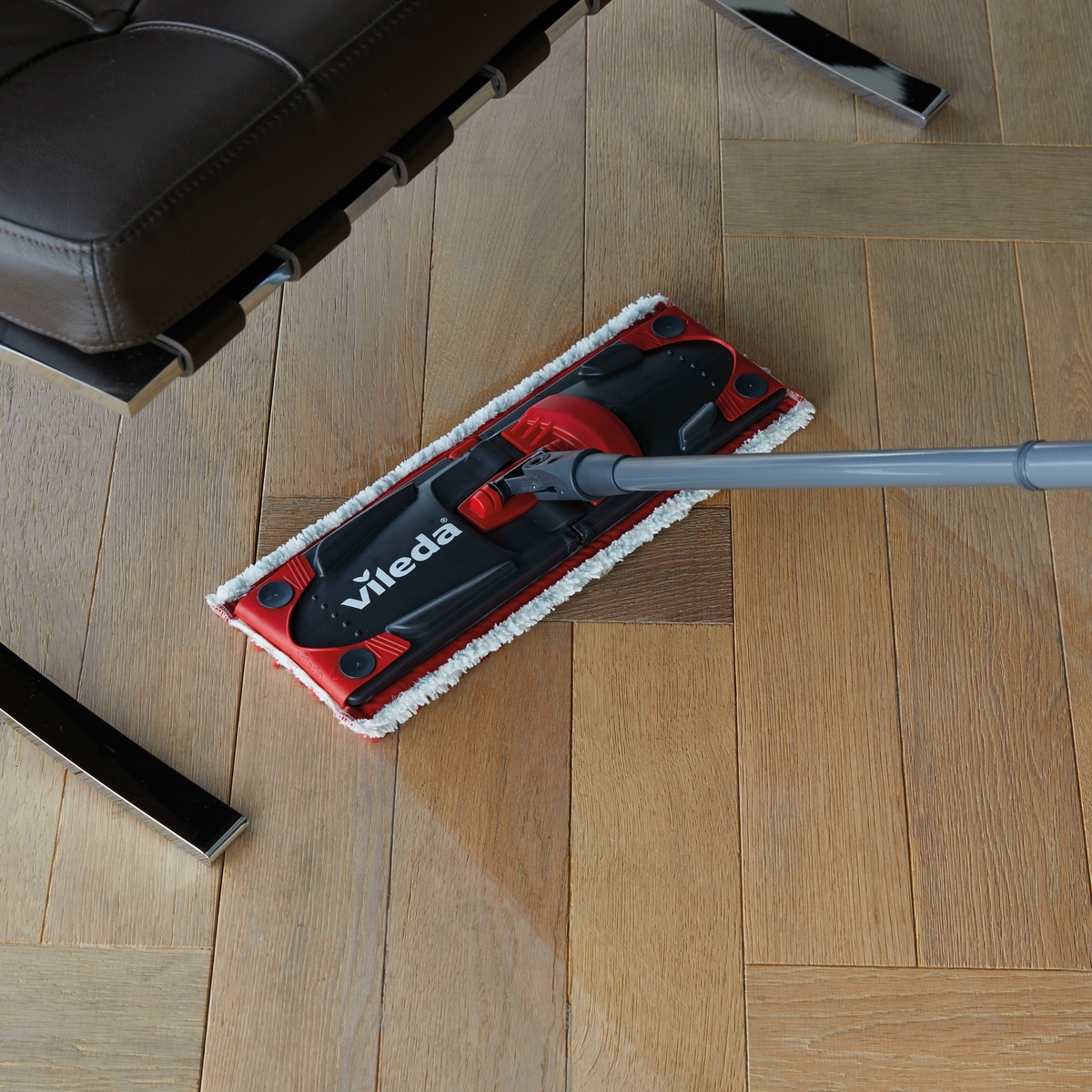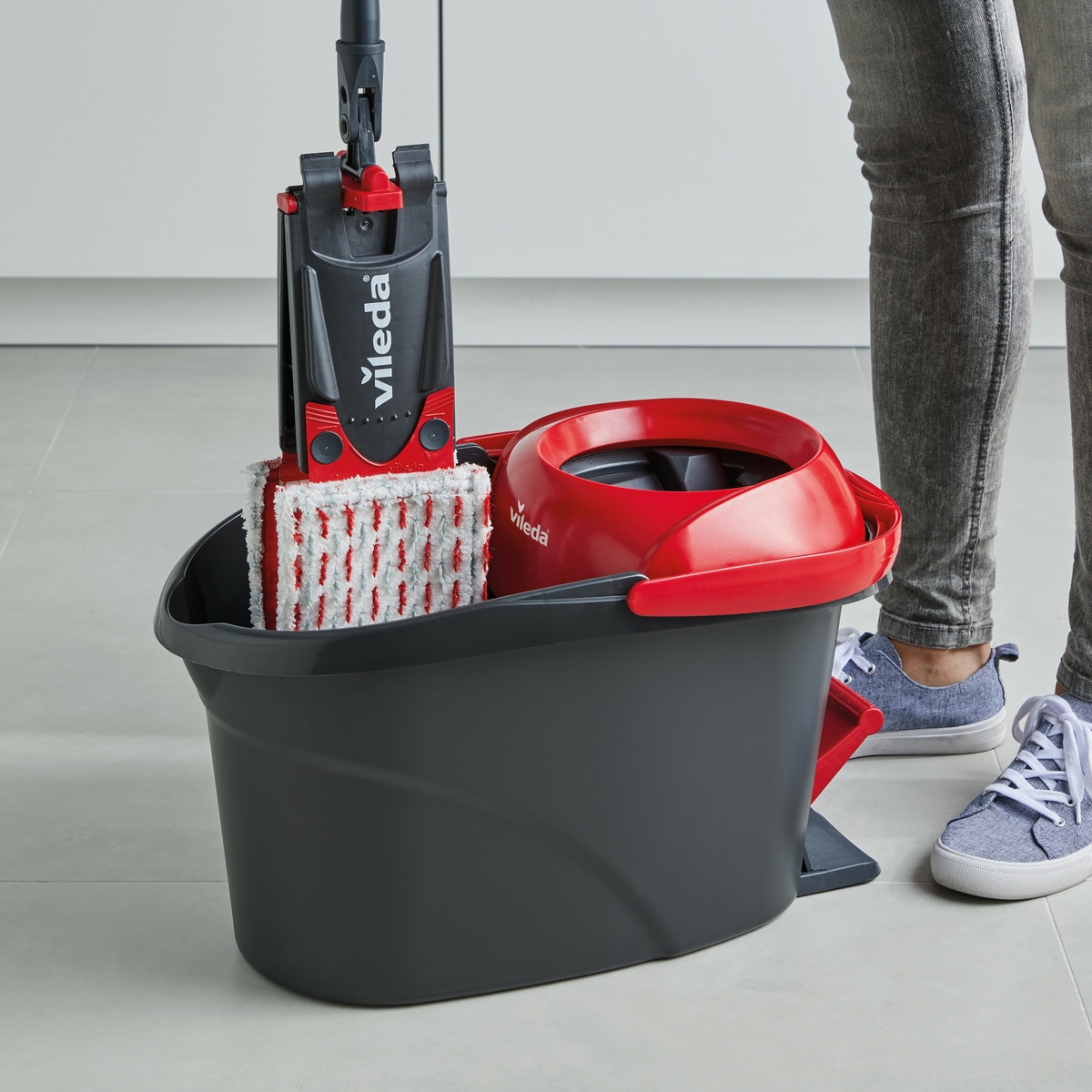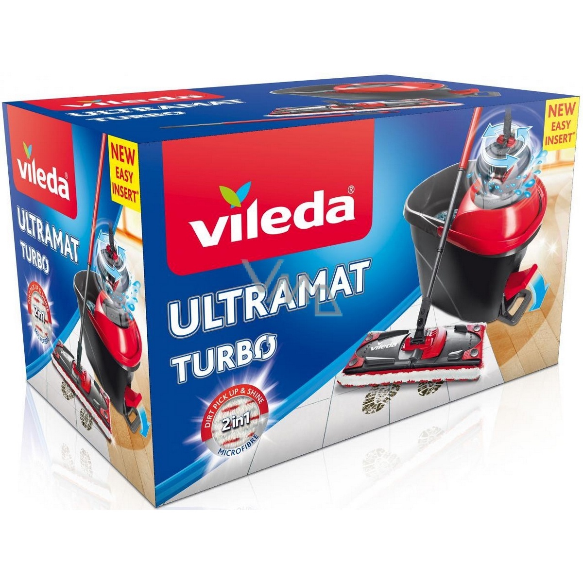 Vileda Ultramax TURBO Microfibre 2v1 – set plochého mopu a vedra so šliapacím pedálom. Jednoduché a veľmi efektívne vyžmýkanie plochého mopu vďaka vylepšenému a zjednodušenému vkladaniu mopu do žmýkacieho koša a vyžmýkaniu vďaka rotačnému systému poháňaného jednoduchým zošliapnutím pedála. Vďaka pedálu nie je pri žmýkaní potrebná žiadna námaha. Dokonale vyžmýkaný plochý mop potom zanechá vašu podlahu čistú a rýchlo suchú.