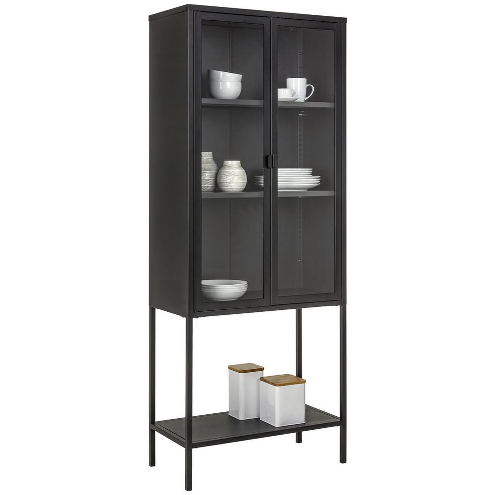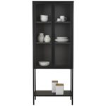 Jednoduchá a praktická vitrína KEA čiernej farby sa prispôsobí každej domácnosti. Za dvomi presklenými dvierkami z tvrdeného skla ponúka úložný priestor a poriadok v modernom a elegantnom formáte. Vitrína je vyrobená z ocele, má rozmery cca 70 x 180 x 35 cm (Š x V x H) a dve výškovo nastaviteľné police, ktoré rozdeľujú priestor do troch priečinkov, v ktorých skvelo vynikne riad, dekorácie alebo knihy. Vitrína ponúka ešte jednu otvorenú policu v spodnej časti. Každú z políc možno zaťažiť maximálne desiatimi kilogramami. Celkovo má vitrína nosnosť 40 kilogramov.