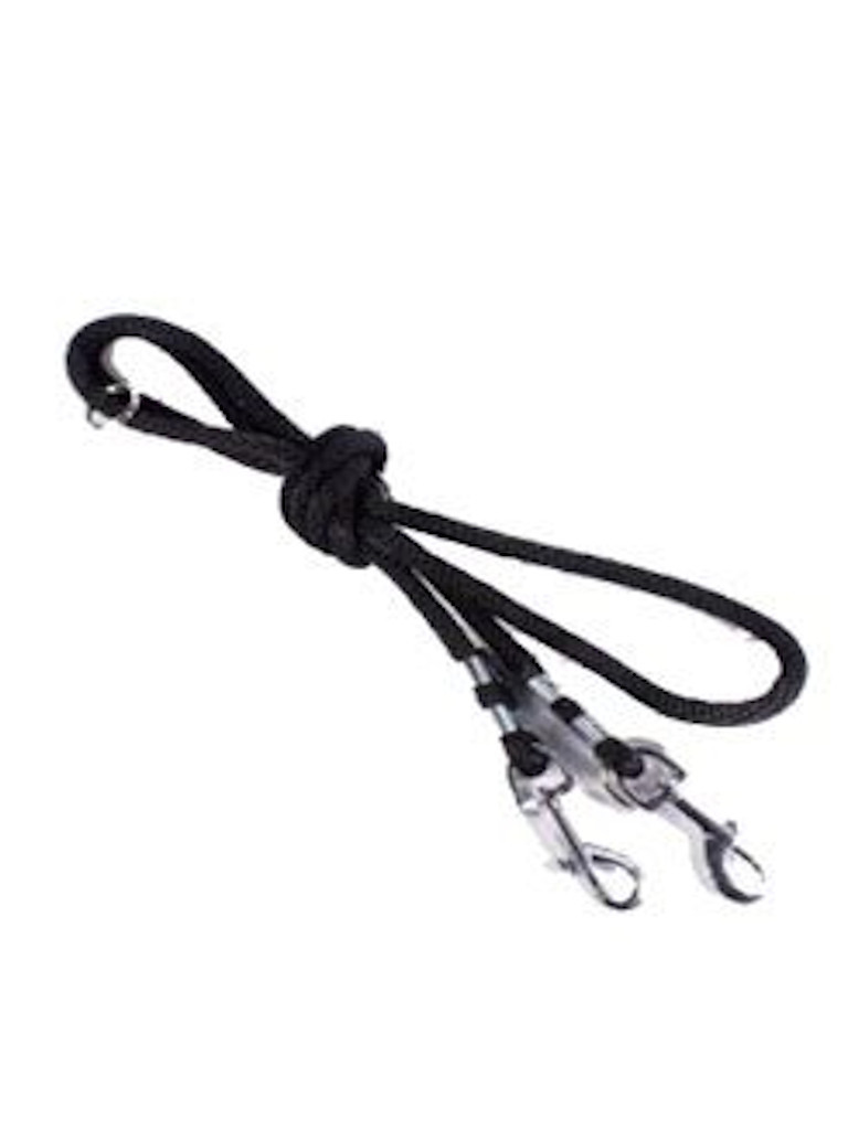 Prepínacie povrazové vodítko s priemerom 10 mm.Veľmi pevné prepínacie vodítko v čiernej farbe zakončené plechovými svorkami a dvoma pevnými karabínami.Povraz je spletený z 18 prameňov, vodítko je teda veľmi pevné a odolné. Pritom je veľmi príjemné do ruky a nezarezáva sa do dlaní. Výhodou vodítok je vysoká pevnosť a oderuvzdornosť, povraz pláva na vode a je odolný voči UV žiareniu. Zakončenie plechovou svorkou zaistí oveľa väčšiu pevnosť spoja.Dĺžka 2,3 m, priemer 10 mm. Vyrobené z vysoko kvalitného materiálu polypropylénu.
