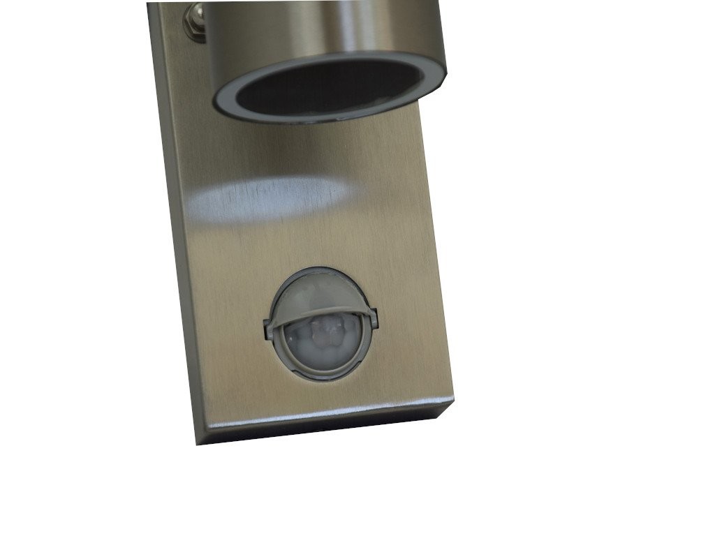 Vonkajšie nástenné svietidlo je vďaka vysokému krytiu IP44 vhodné pre osvetlenie vášho exteriéru. Uvítate ho všade tam, kde je po zotmení potrebné svetlo. Svietidlo osvetľuje smerom hore a dole. Posvietiť si tak môžete na prístupové cesty, schodisko, vstup do domu alebo tiež balkóny, terasy a bazény. Telo lampy je nerezové s tienidlom zo skla. Pohybové čidlo sa zapne automaticky pri detekcii pohybu. Dosah pohybového senzora je až 8 m, uhlový rozsah 90 °. Časové oneskorenie senzora až 5 min. Svietidlo je maximálne odolné voči poveternostným vplyvom. Zdroj: 2 x GU 10, max. 2 x 35W.