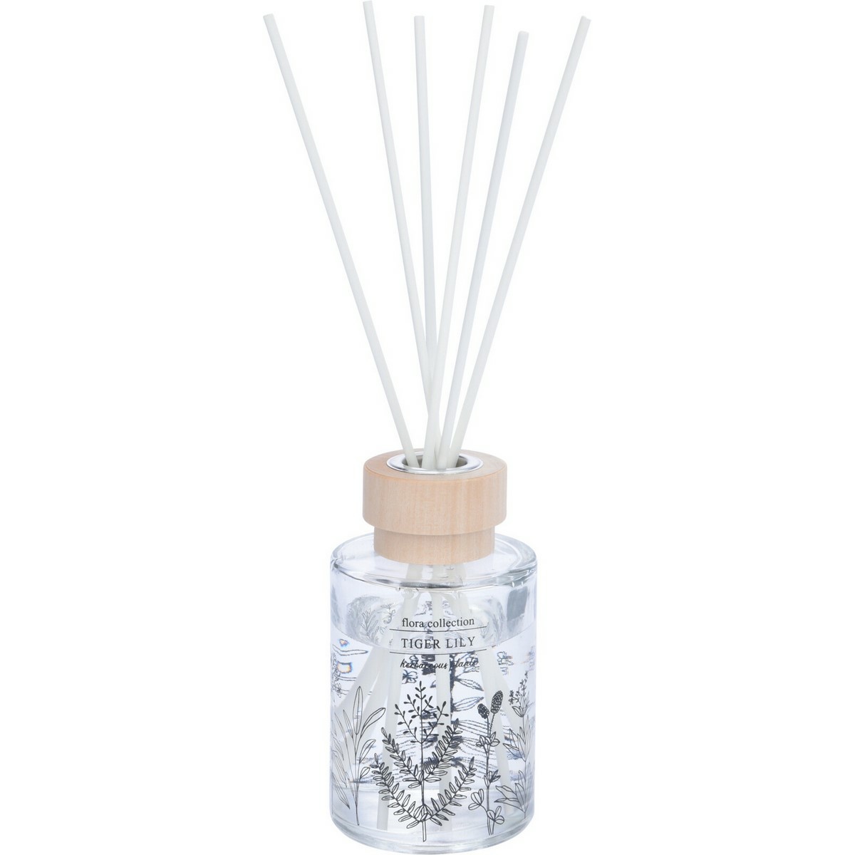 Tento elegantný difuzér prevonia váš domov príjemnou kvetinovou vôňou s nádychom čiernej ruže. Flakón je z číreho skla s objemom 100 ml, dekorovaný čiernou potlačou kvetín. Súčasťou krásneho darčekového balenia je sada 6 ratanových tyčiniek, ktoré slúžia na uvoľnenie a reguláciu vône.