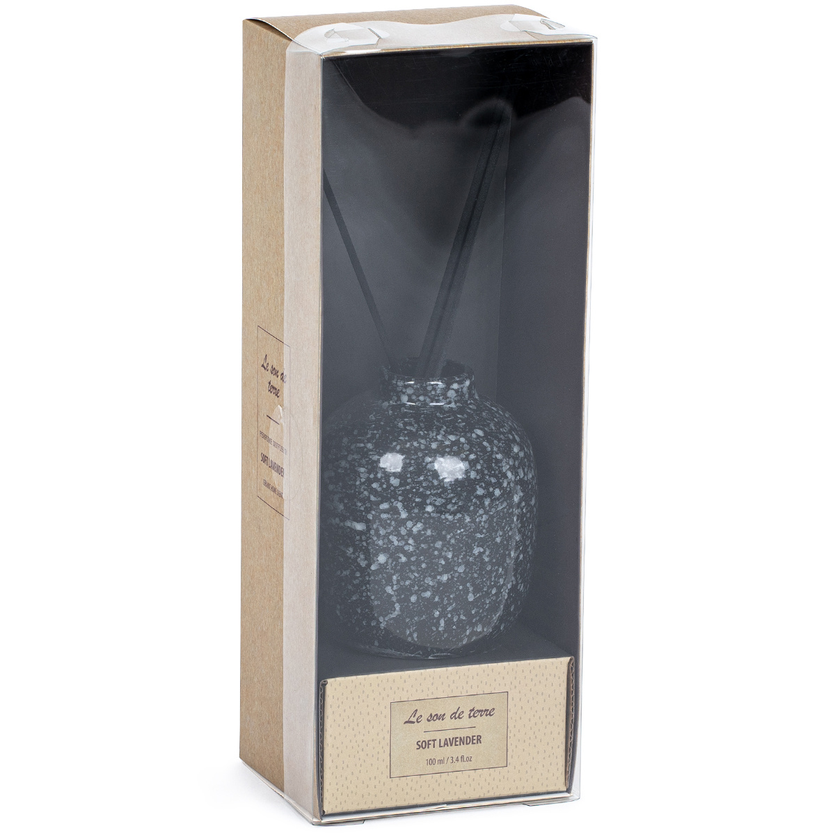 Vonný difuzér v keramickom obale s neutrálnymi farbami si obľúbite pre jeho moderný vzhľad a ľahkú levanduľovú vôňu. Nádoba je z keramiky s lesklým kamenným vzhľadom. Difúzer je doplnený šiestimi čiernymi tyčinkami. Množstvom vložených tyčiniek môžete regulovať intenzitu vône.