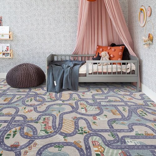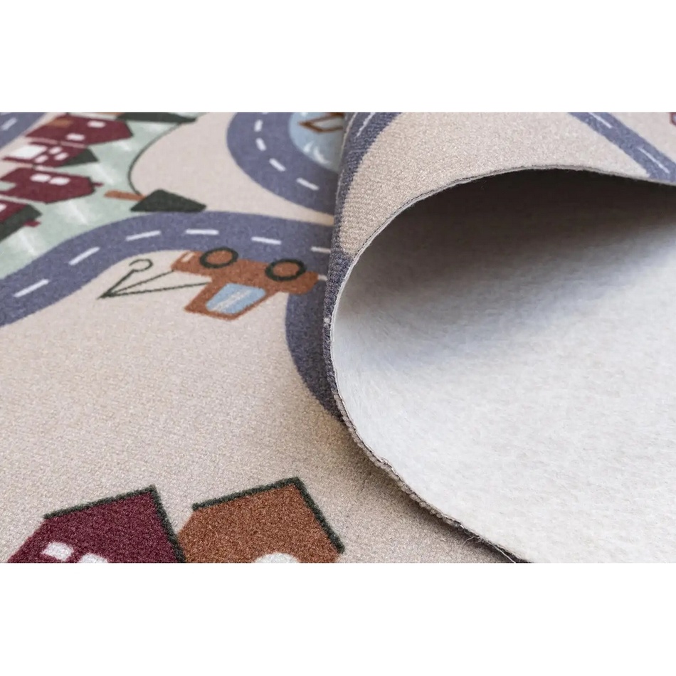 Detský kusový koberec Scanroad má populárny motív ciest, jazdiacich áut, domčekov, budov aj vodných plôch. Koberec je vyrobený zo 100% kvalitného polyamidového vlákna a na spodnej strane disponuje filcovým podkladom. Kusový koberec je vhodný do každej detskej izby a triedy materskej školy.
