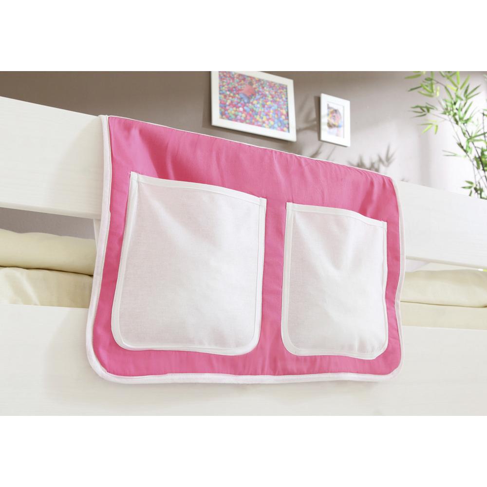 Tento tovar je k dispozícii IBA ONLINE. Táto látková taška dopĺňa detskú poschodovú posteľ o praktickú možnosť úložného priestoru. Je vyrobená zo 100 % bavlny v ružovo-bielej farbe. Má dve vrecká a ľahko sa pripevňuje na zábradlie postele …