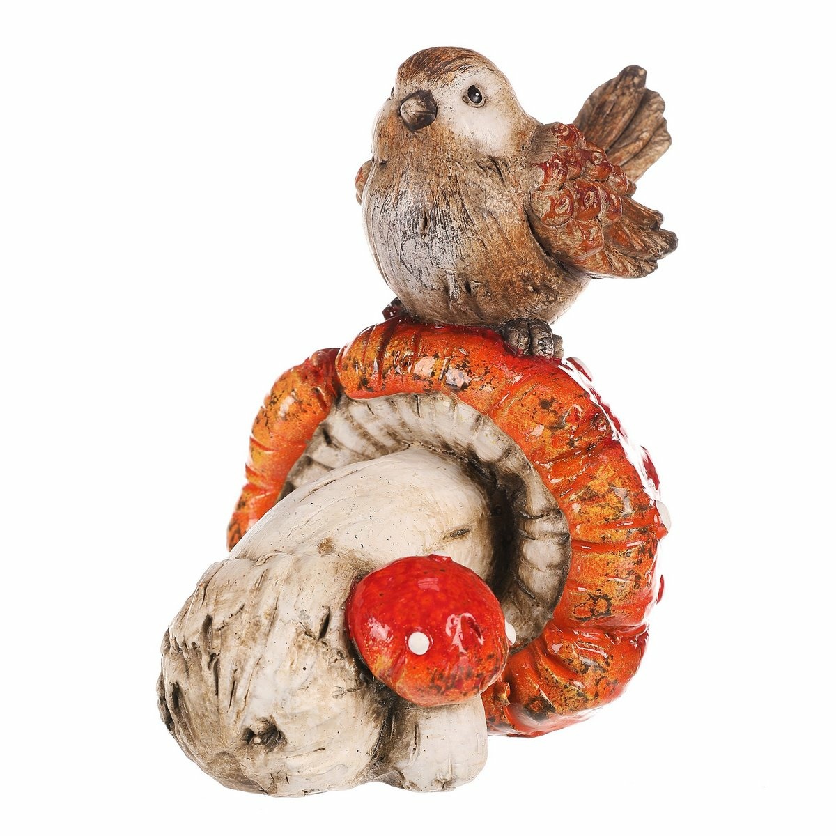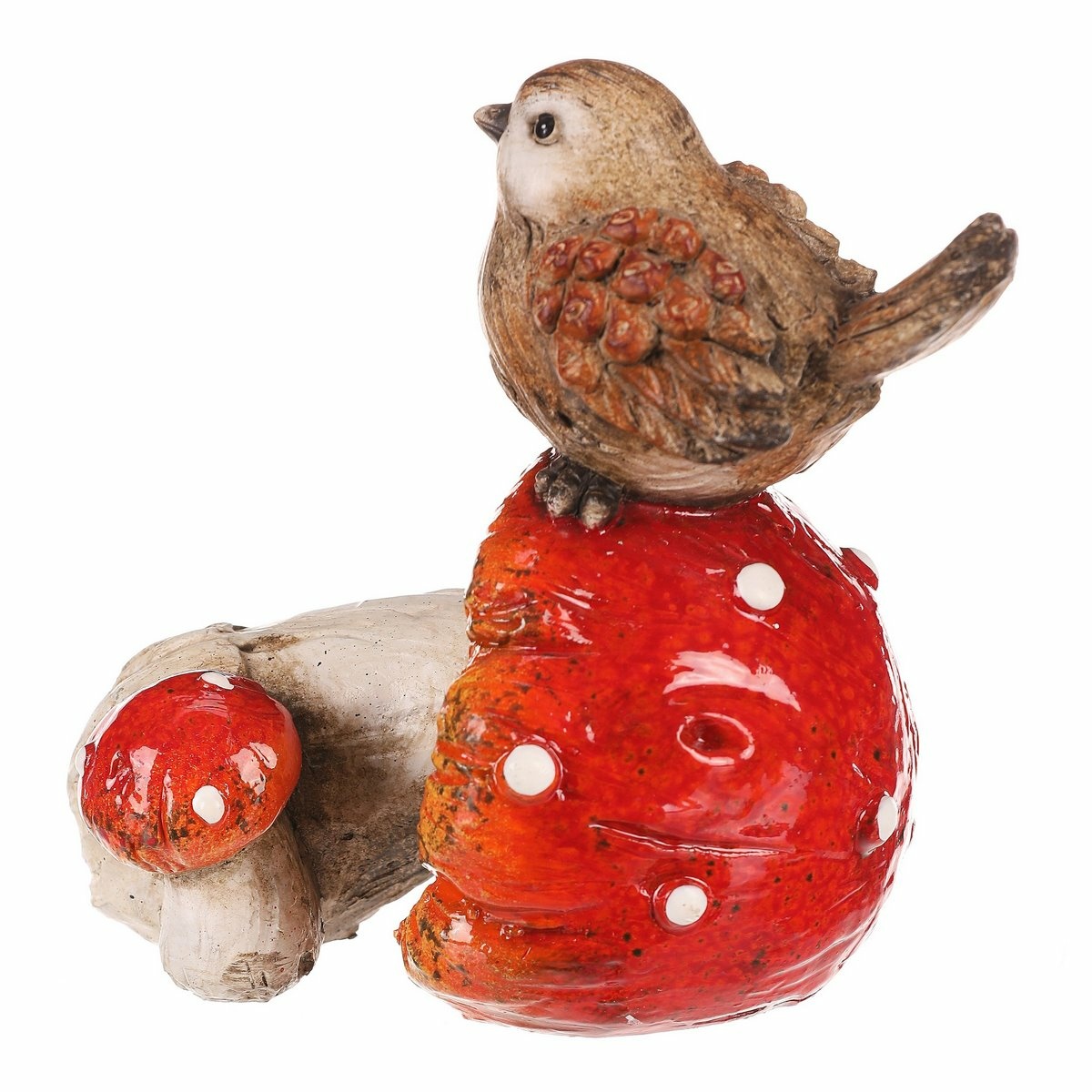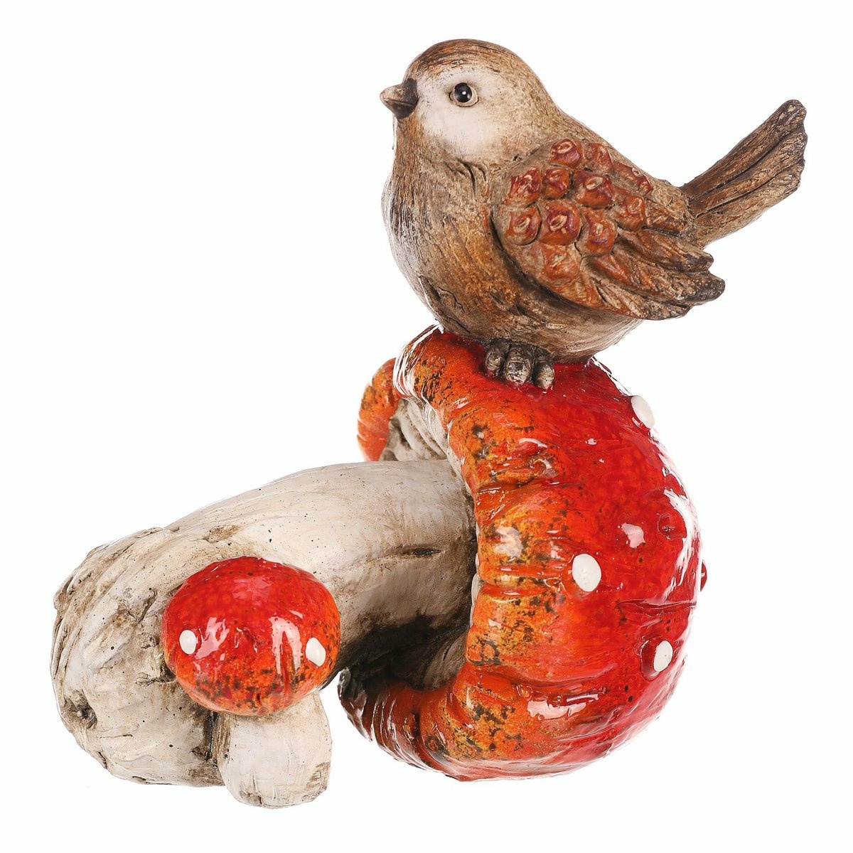 Vtáčik na muchotrávke, polyresin, 10 x 14 x 13 cm