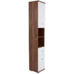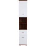 Vysoká skriňa s korpusom v dekore dub Kraft tmavý, čelo MDF biele lakované, s 2 dverami, 1 zásuvkou a 3 policami, úchytky hliníkovej farby.Š/V/H: cca 35,5/190/31,5 …