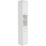Vysoká skrinka s korpusom v bielom dekore, s čelom v bielej, MDF, lakovanej, vysoký lesk, s 2 dvermi, 1 zásuvkou, s kovovými úchytkami, s 3 vkladacími policami s hr.16 mm a s 1 otvorenou priehradkou.Š/V/H: 30/192/30 …