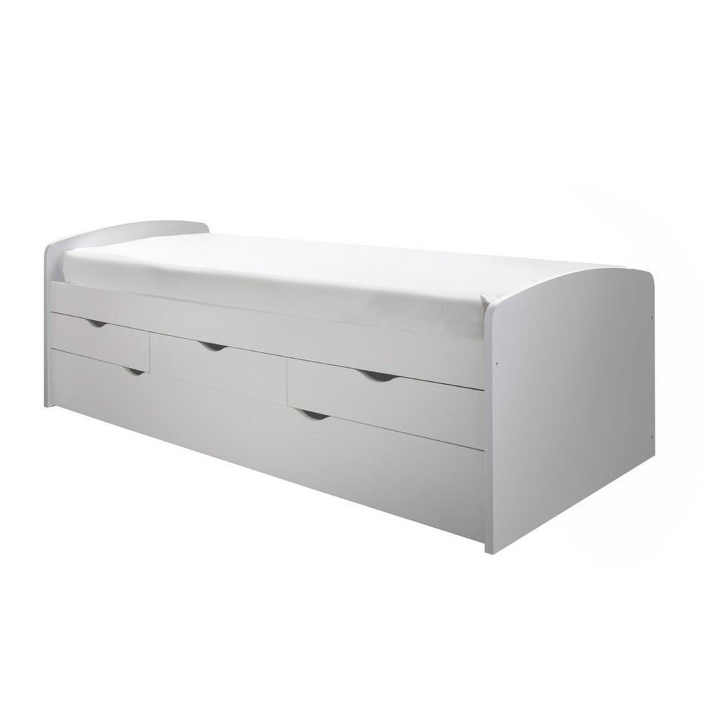 Tento tovar je dostupný IBA ONLINE. Posteľ NESSI je skvelým riešením do detských, tínedžerských alebo hosťovských izieb. Má dostatok priestoru a extra pohodlné vysúvacie lôžko pre hostí! Okrem hlavnej plochy lôžka cca 90 x 200 cm má integrovaný ďalší priestor na spanie – jednoducho vysuniete druhú plochu lôžka s rovnakým rozmerom približne 90 x 200 cm a vznikne tak ďalšie miesto na spanie pre hosťa alebo rodiča. Posteľ s celkovými rozmermi cca 206,4 x 96 x 63,5 cm (Š x V x H) a maximálnou nosnosťou 100 kg zaujme pekným dizajnom s dreveným dekorom v bielom prevedení. V troch integrovaných zásuvkách je dostatok úložného priestoru na posteľnú bielizeň, hračky a pod. Posteľ je skvelým riešením do menších priestorov a kde sa očakávajú návštevy. Matrac a rolovací rošt nie sú súčasťou dodávky. Vhodné príslušenstvo nájdete v našom internetovom obchode. Pozrite si aj naše produkty z kategórie: drevené postele