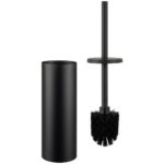 Doplňte si svoju toaletu o túto skvelú WC kefu aj so stojanom! WC pomôcka je vyrobená z nehrdzavejúcej ocele v čiernej farbe, čím vytvára nenásilný dekoračný a praktický doplnok do WC a kúpeľne. Bude vždy poruke a štýlovo uschovaný. S rozmermi približne cca. 9/39/12,5cm je tento stojan s WC kefou naozaj kompaktný a nezaberá miesto.