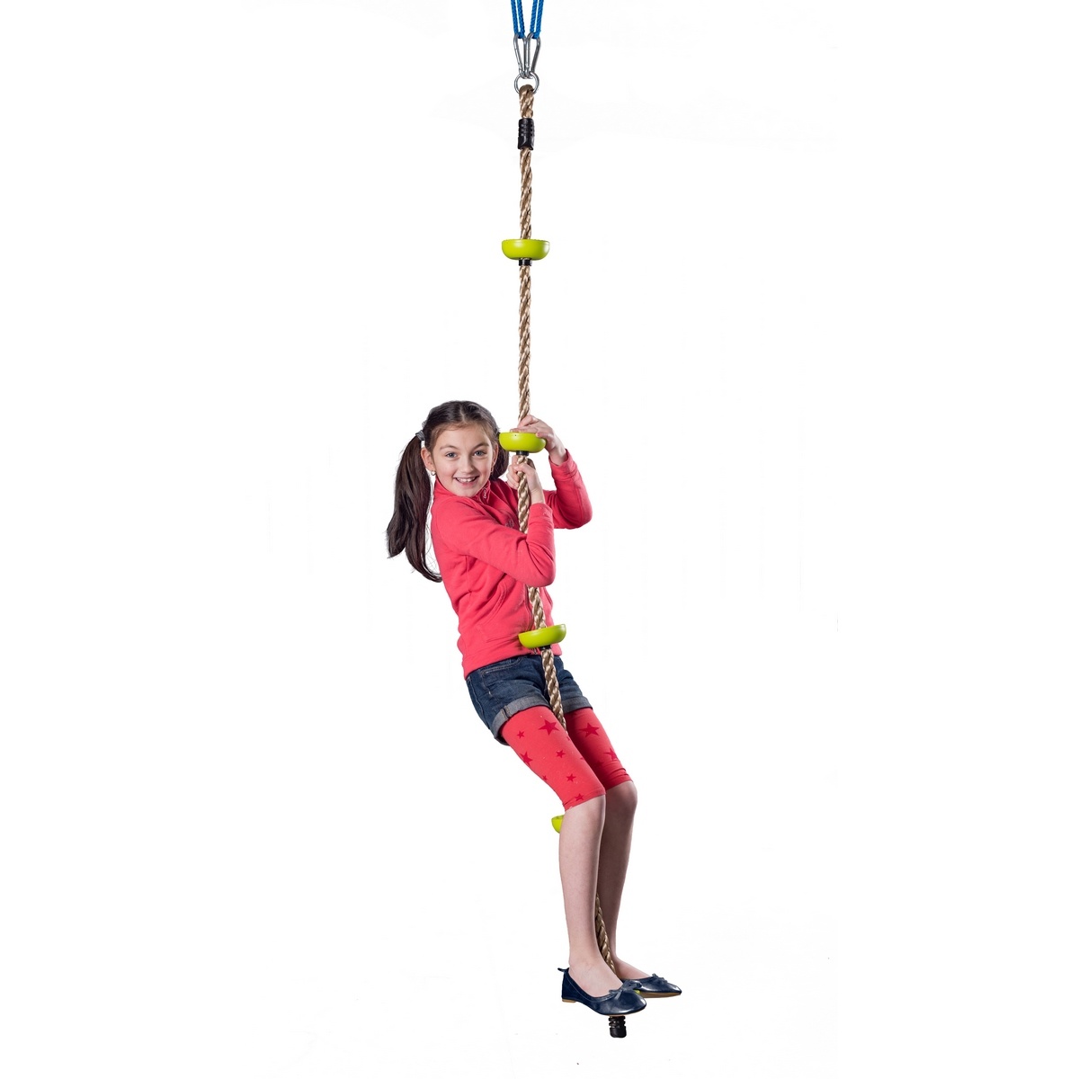 Lano je opatrené stúpadlami, ktoré pomáhajú deťom zafixovať svoju polohu pri šplhaní aj hojdaní sa na lane.