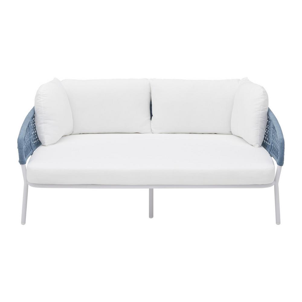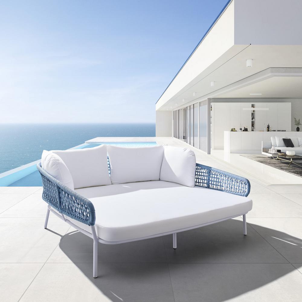 Tento výrobok je k dispozícii IBA ONLINE. S touto záhradnou pohovkou v stredomorskom štýle môžete do svojej záhrady alebo na terasu vniesť pravú dovolenkovú atmosféru. Elegantný vzhľad a kvalitné spracovanie robí z tejto slnečnej oázy pohody, s rozmermi cca 170 x 68 x 150 cm (Š x V x H), extravagantný pútač. Robustný hliníkový rám bielej farby zaisťuje zaručenú stabilitu. Modrý výplet harmonicky zapadá do celkového obrazu. Veľká biela poduška, s rozmermi cca 145 x 10 x 160 cm (Š x V x H) je vybavená mäkkou penovou výplňou a snímateľným poťahom z olefínových vlákien. 4 ladiace dekoratívne vankúše vám umožnia oprieť sa a relaxovať. Leto si tak môžete dokonale užiť! Doprajte si tento záhradný nábytok, odolný voči poveternostným vplyvom, u vás doma! Upozornenie: Tento tovar sa nenachádza v našich predajniach. Objednať si ho môžete iba cez e-shop Möbelix.