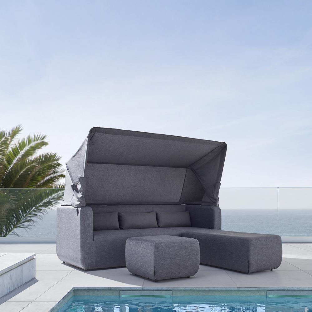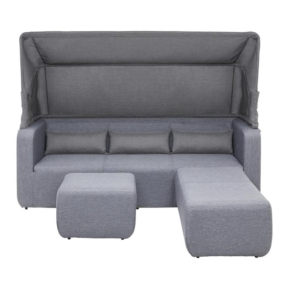 Tento tovar je k dispozícií IBA ONLINE.S týmto slnečným ostrovom v antracitovej šedej farbe vytvoríte hotové dizajnové miesto na vašej záhrade alebo terase. Rovný vzhľad a kvalitné spracovanie robia zo slnečného ostrova ideálnu voľbu pre horúce letné dni. Slnečný ostrov s látkovým poťahom z vysoko kvalitnej tkaniny Olefin®® má stabilný hliníkový rám. Olefin je vysoko kvalitná textília odolná voči poveternostným vplyvom. Mäkké čalúnenie a útulné dekoračné vankúše zaisťujú vynikajúci komfort sedenia. Slnečný ostrov je tiež vybavený nastaviteľnou slnečnou strieškou. Lavica má rozmery približne 216 x 79 x 90 cm (Š/V/H) a každá z dvoch taburetiek má veľkosť približne 60 x 60 cm (Š/V) a 120 x 60 cm (Š/V).