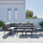 Tento výrobok je k dispozícii iba ONLINE. Tento sedací salónik v sivej farbe ponúka štýlové miesto na oddych v letných mesiacoch. Rohová sedacia súprava, tvorená z dvoch lavíc, má robustný kovový rám doplnený o výplet z textilného lana. O …