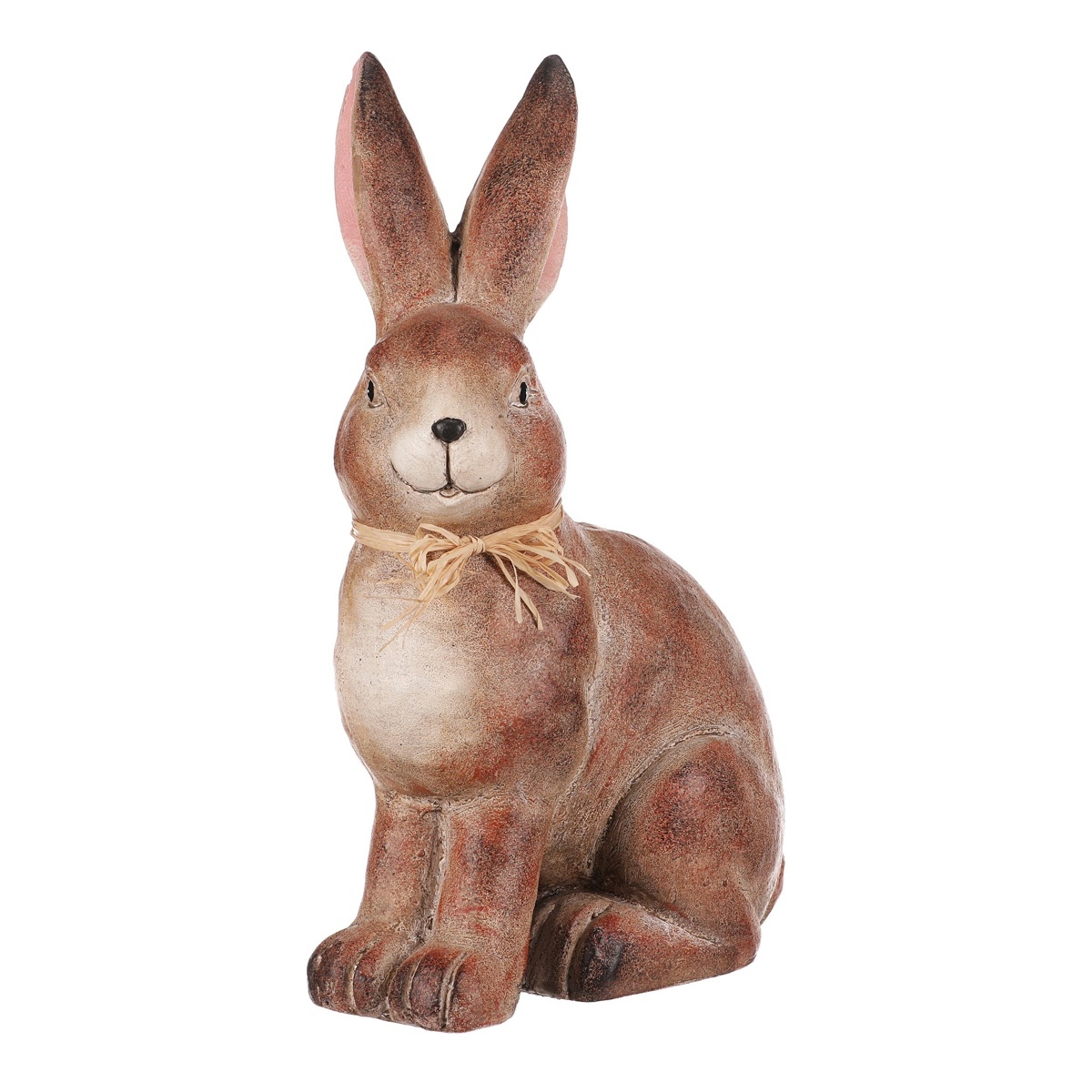 Premýšľate, ako s príchodom jari a Veľkej noci oživiť váš priestor vhodnou ozdobou, ktorá by zároveň šírila radosť a dobrú náladu? V tom prípade polyresinová dekorácia na postavenie v podobe veselého zajačika s mašličkou bude skvelou voľbou. Zajac je totiž jedným zo zvieracích symbolov Veľkej noci a príchodu prvých jarných dní.V tomto milom prevedení bude skutočným poslom pozitívnej energie a každému vymaľuje úsmev na tvári, či už deťom alebo dospelým. Preukážte svoju nápaditosť a originalitu vystavením tejto krásnej dekorácie z polyresinu na viditeľné miesto. Užívajte si prvé jarné dni v obklopení milých a veselých okrasných predmetov, medzi ktorými nesmie chýbať táto úžasná zvieracia figúrka.