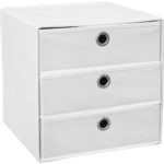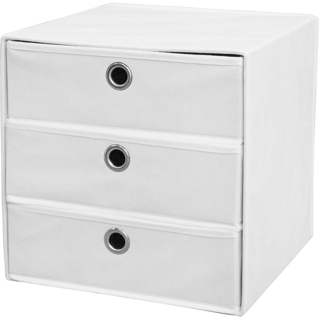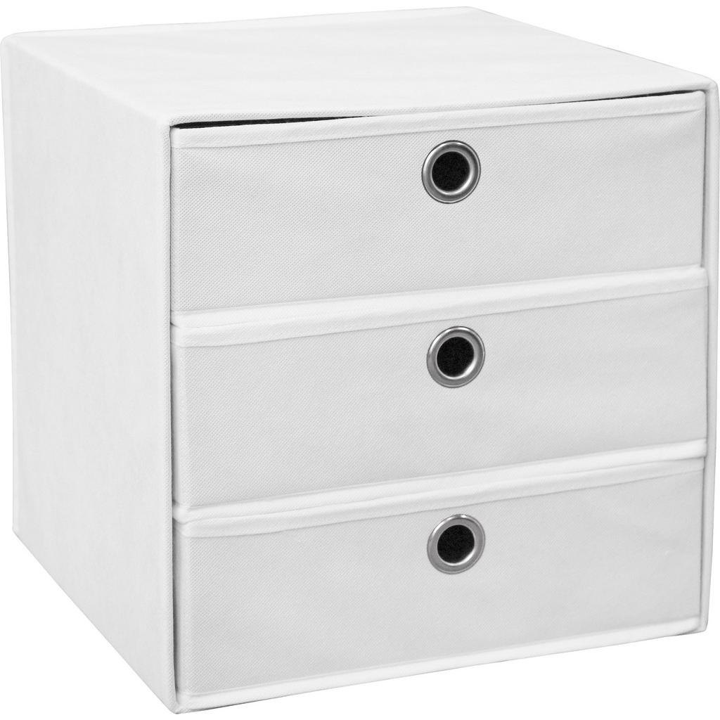Zásuvkový box LISA v bielej farbe je praktickým doplnkom do regálov alebo skríň. V 3 zásuvkách si môžete uskladniť písacie potreby, ponožky, spodné prádlo, fotografie, ako aj rôzne iné drobnosti. Box s rozmermi 32 x 32 x 32 cm (š/v/h) je dostupný aj v iných farbách!