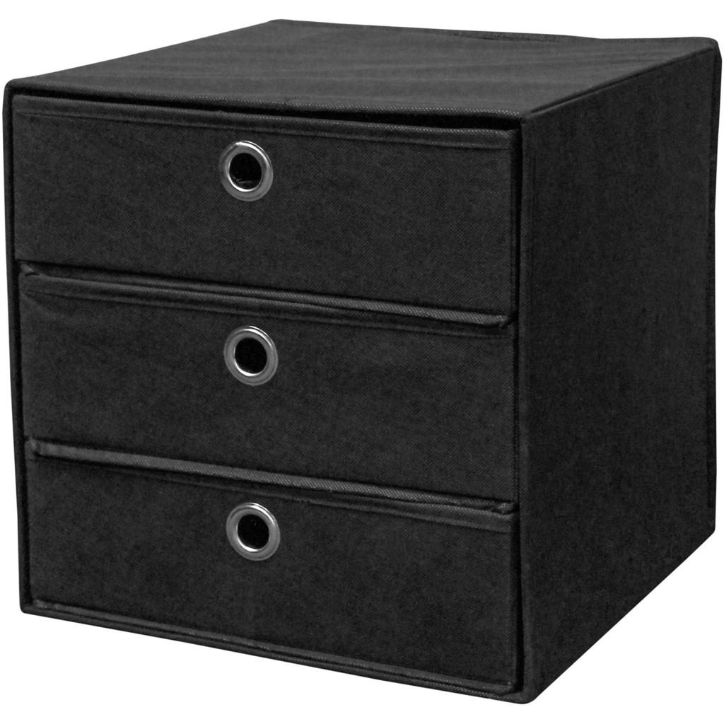 Zásuvkový box LISA v čiernej farbe je praktickým doplnkom do regálov alebo skríň. V 3 zásuvkách si môžete uskladniť písacie potreby, ponožky, spodné prádlo, fotografie, ako aj rôzne iné drobnosti. Box s rozmermi 32 x 32 x 32 cm (š/v/h) je dostupný aj v iných farbách!