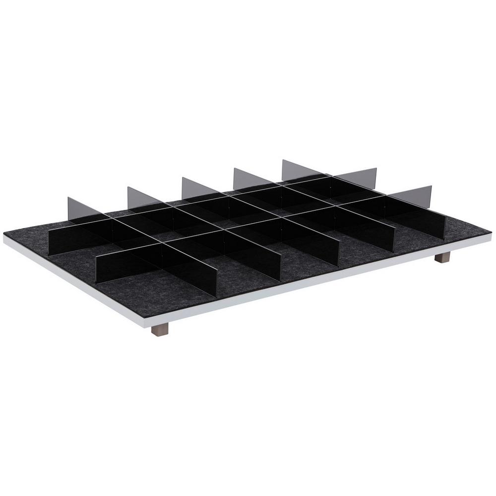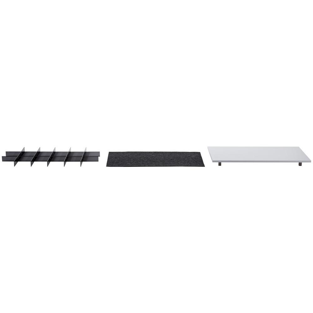 S týmto plastovým nástavcom na zásuvky s plsteným dnom antracitovej farby prinesiete do šatníka ešte väčší poriadok a prehľad. Toto príslušenstvo je vhodné pre akékoľvek 3 široké zásuvky zo série UNIT. Navrhnite si svoj šatník s exkluzívnym šatníkovým programom UNIT podľa potreby. Vyberte si z mnohých rôznych prvkov a farieb presne podľa vášho želania a nájdite optimálne riešenie pre celú vašu kolekciu oblečenia. Najdôležitejšie informácie: dvojité dno oddeľovníky z plexiskla farba: sivá antracitová vhodné pre 3 široké zásuvky materiál: plast, plsť