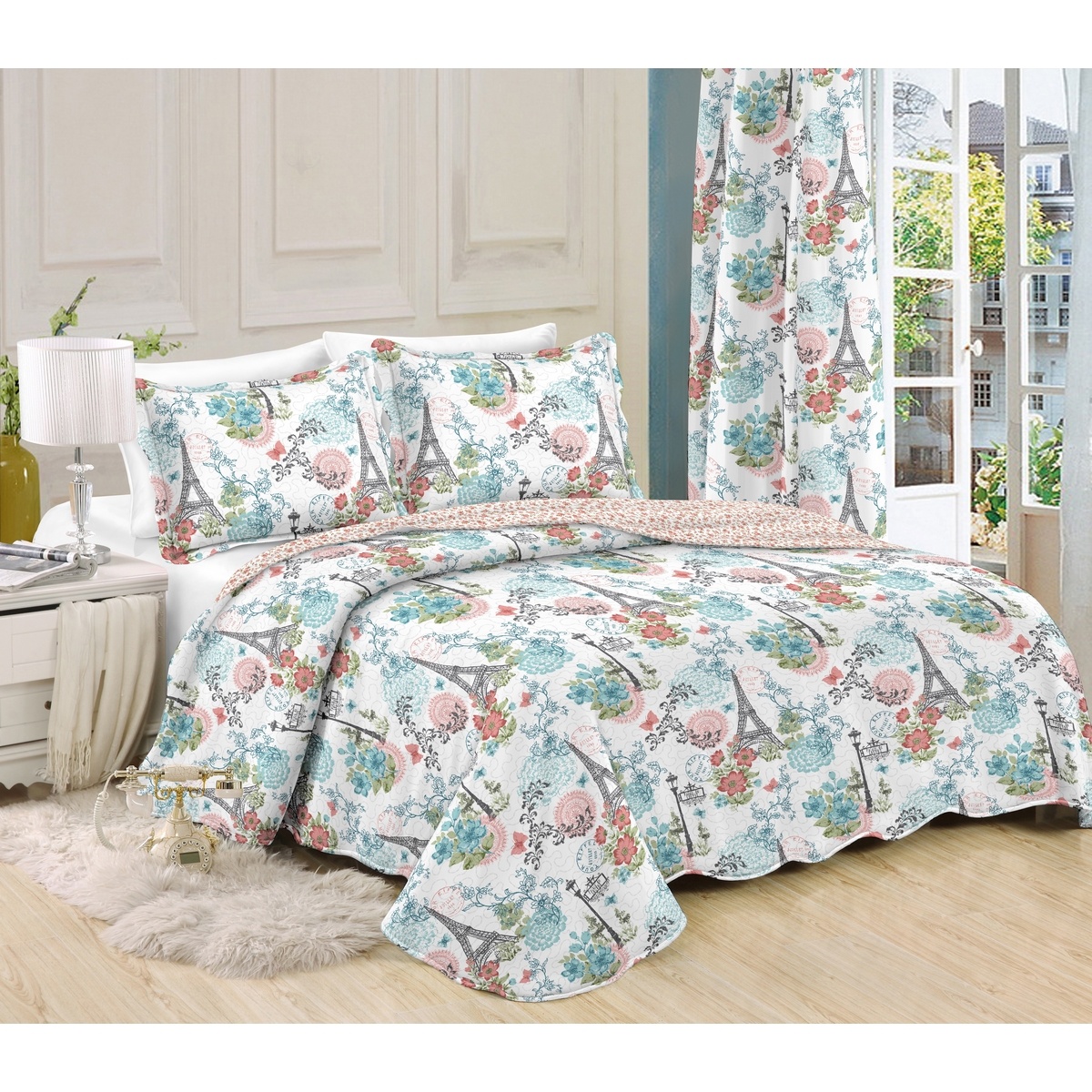 Záves Eiffelovka kvety, 140 x 250 cm