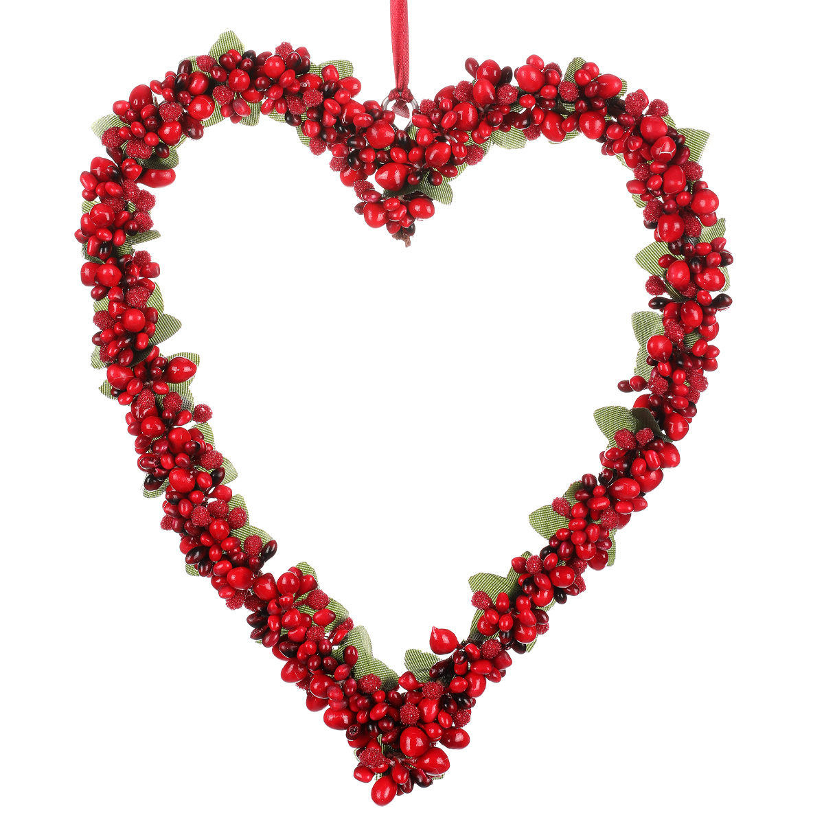 Závesná dekorácia Srdiečko s bobuľami, 21 x 25 x 2 cm