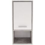 Závesná skrinka v dekore beton/perlovo biela, s melamínovým povrchom odolným voči poškriabaniu, s 1 dverami s úchytkou chrómovej farby a s 3 vkladacími policami s nosnosťou 3 kg. Š/V/H: cca 32/68/28 …