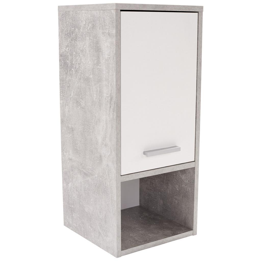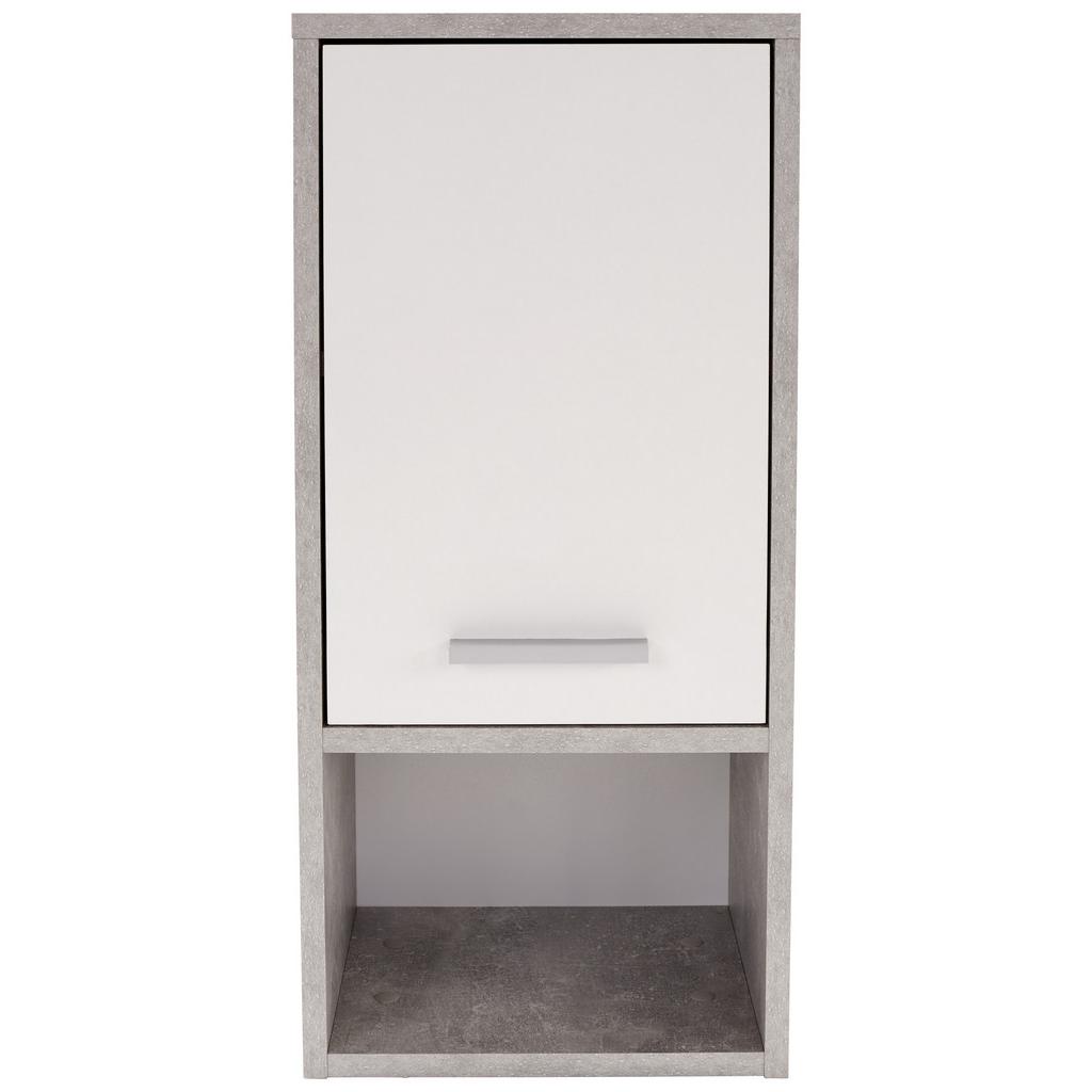 Závesná skrinka v dekore beton/perlovo biela, s melamínovým povrchom odolným voči poškriabaniu, s 1 dverami s úchytkou chrómovej farby a s 3 vkladacími policami s nosnosťou 3 kg. Š/V/H: cca 32/68/28 cm